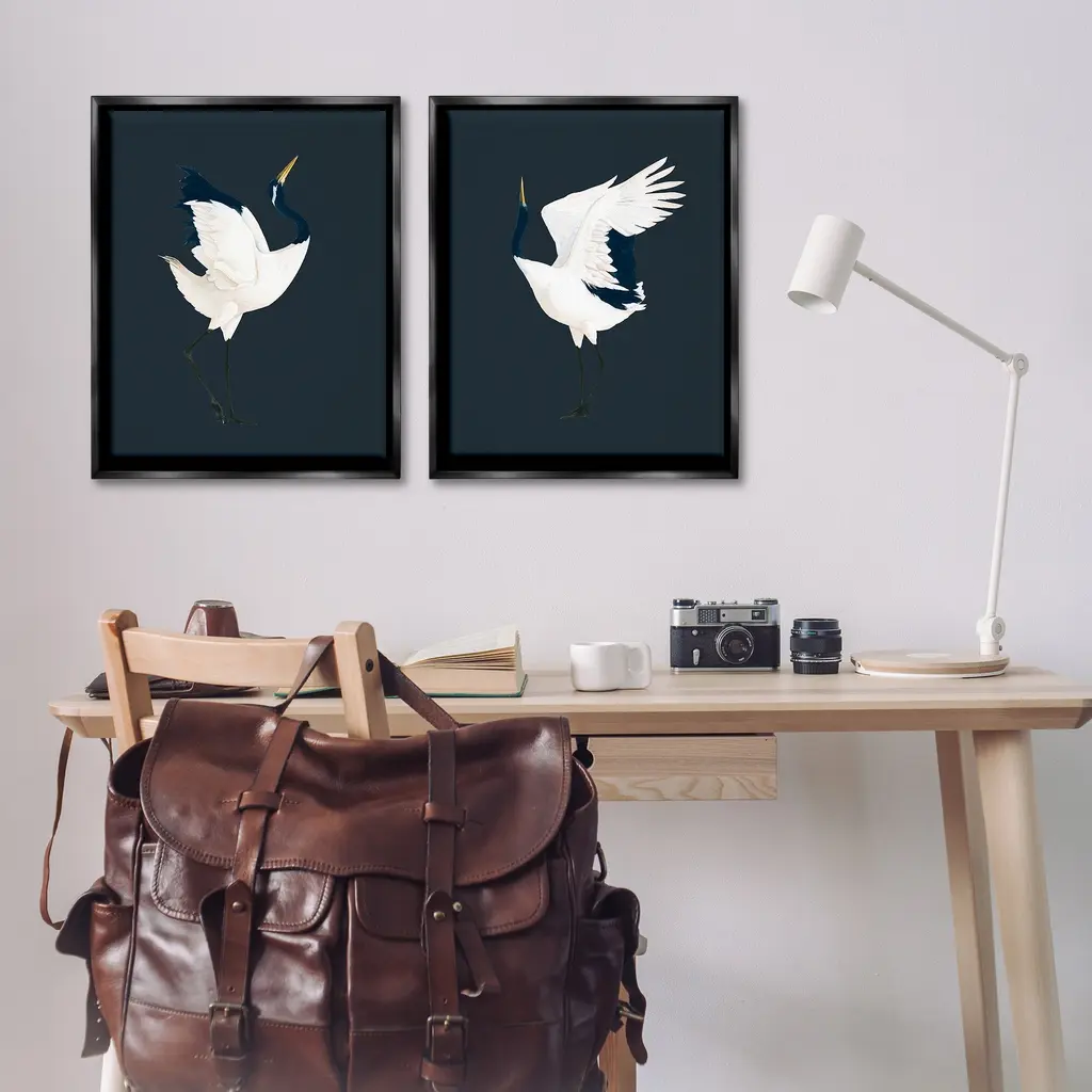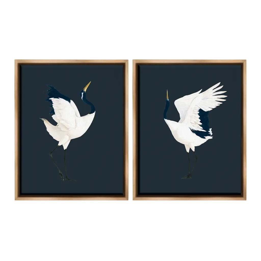 Elevate your home or office to the next level with Stupell Framed Floating Canvas Wall Art. Our premium hand-stretched canvas is mounted securely into a sturdy lightweight frame. The museum-style gap between the wrapped canvas and the box frame gives the illusion of floating artwork. Stupell Wall Art is made in the USA.Features: Dimensions: 2 Piece Set, Each Frame is 17 x 1.7 x 21Two Piece Floater Framed Canvas are available as 17x21 or 25x31 Panels. All Floater Frame Products have a 1.7" Depth.Wall Art is Ready to Hang with Hardware Free Hanging. No Installation required. For Easy Set Up Lean or Layer Artwork on Shelf or Against Wall. Artwork is Permently Fixed into the Frame.Our elevated 1.7" Thick Floating Frame is the perfect complement to our canvas style Wall Art. We use only the highest quality inks in house with industry leading printing solutions. Canvas is hand stretched over a durable wood foundation and then mounted securly into a Modern Box Frame. Made in the USA.Artwork Relates To: Animal, Bird, Crane Bird, Crane Dance, Modern, TraditionalDesign by Grace Popp