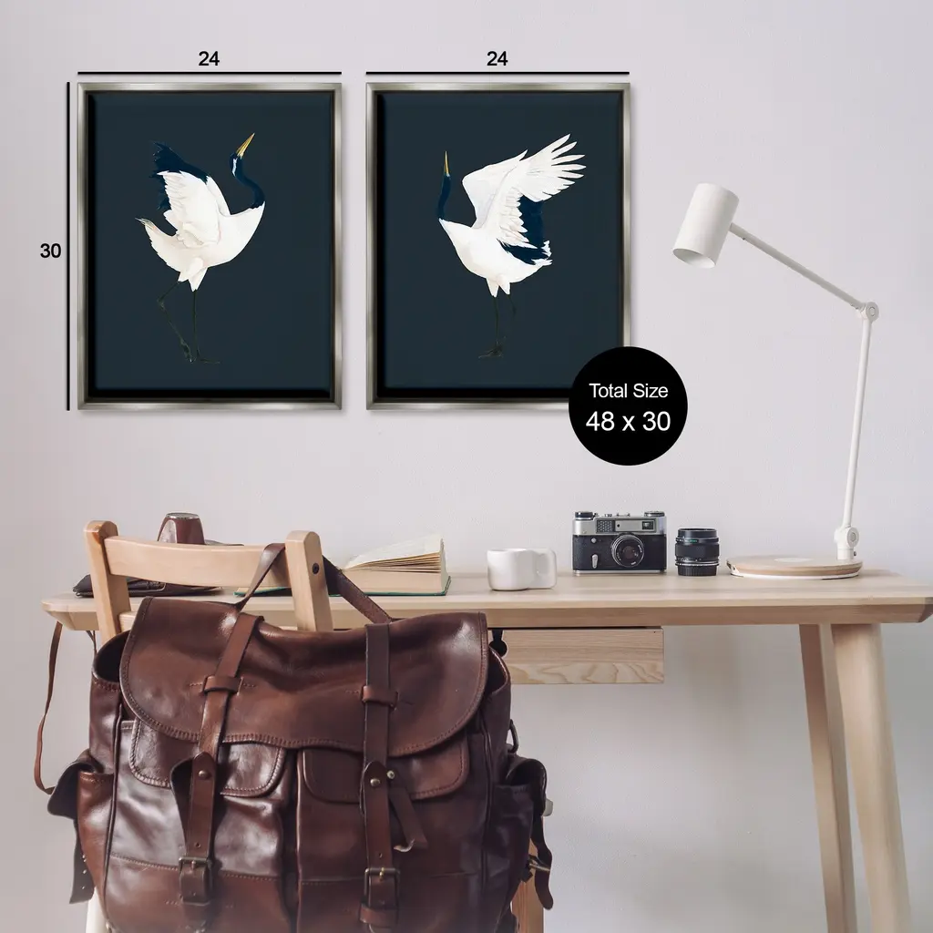 Elevate your home or office to the next level with Stupell Framed Floating Canvas Wall Art. Our premium hand-stretched canvas is mounted securely into a sturdy lightweight frame. The museum-style gap between the wrapped canvas and the box frame gives the illusion of floating artwork. Stupell Wall Art is made in the USA.Features: Dimensions: 2 Piece Set, Each Frame is 17 x 1.7 x 21Two Piece Floater Framed Canvas are available as 17x21 or 25x31 Panels. All Floater Frame Products have a 1.7" Depth.Wall Art is Ready to Hang with Hardware Free Hanging. No Installation required. For Easy Set Up Lean or Layer Artwork on Shelf or Against Wall. Artwork is Permently Fixed into the Frame.Our elevated 1.7" Thick Floating Frame is the perfect complement to our canvas style Wall Art. We use only the highest quality inks in house with industry leading printing solutions. Canvas is hand stretched over a durable wood foundation and then mounted securly into a Modern Box Frame. Made in the USA.Artwork Relates To: Animal, Bird, Crane Bird, Crane Dance, Modern, TraditionalDesign by Grace Popp