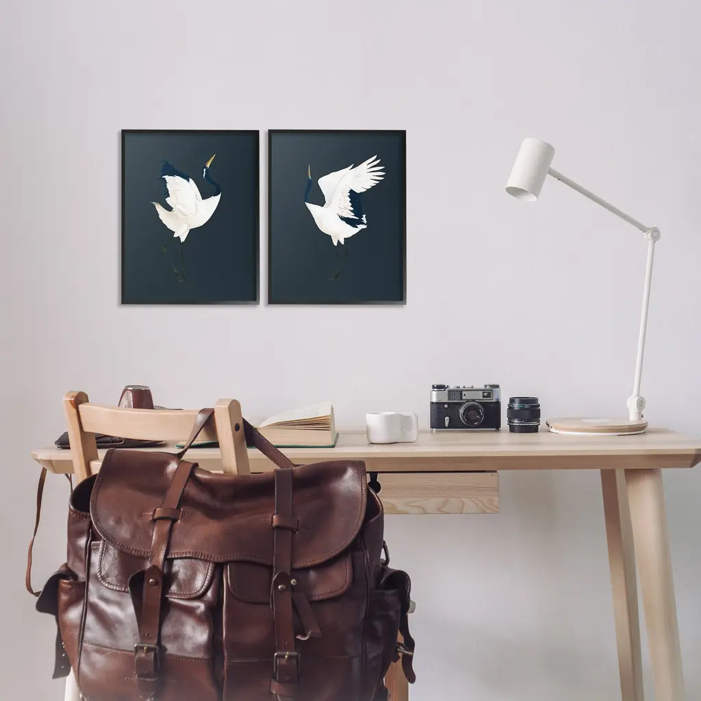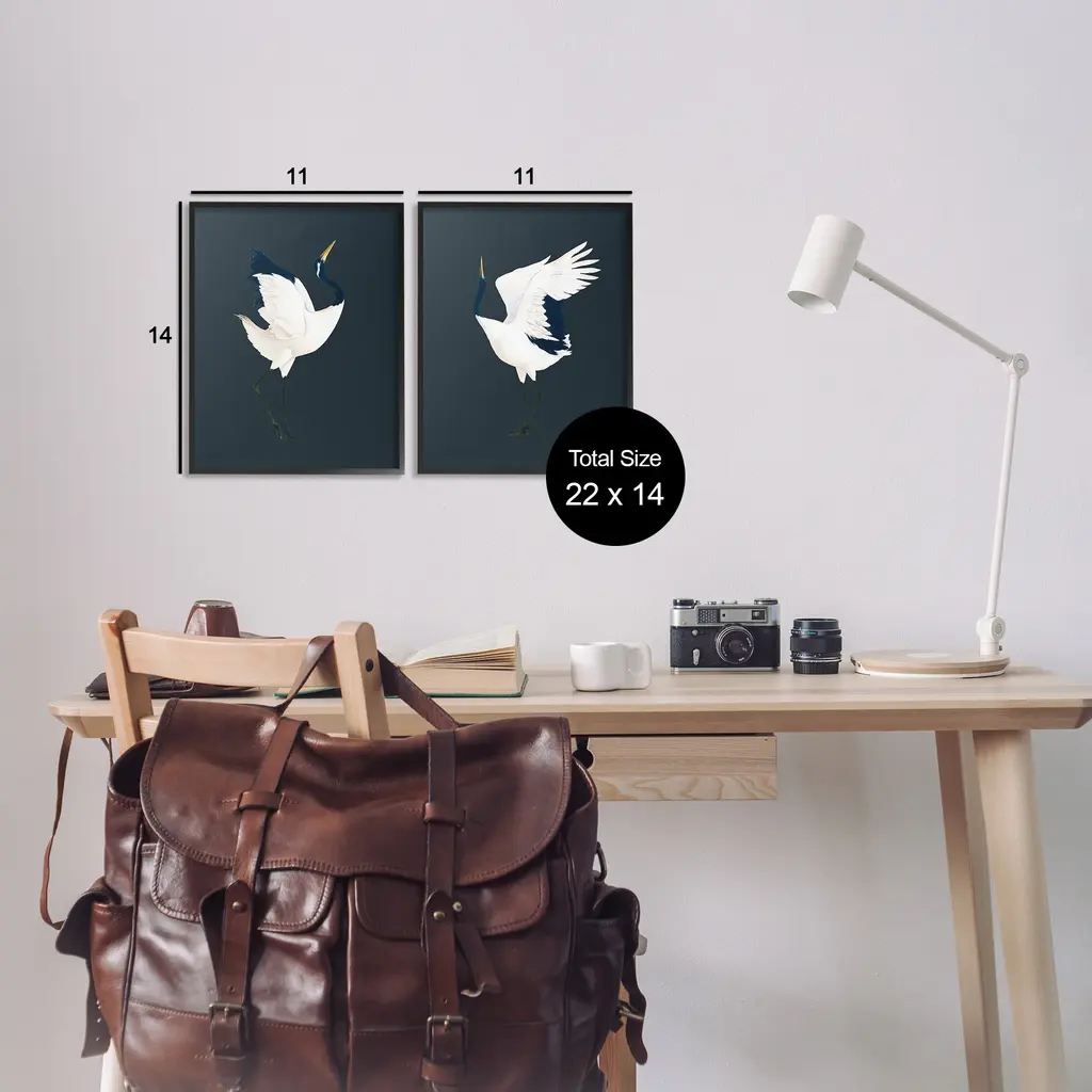 Fill any space in your home or office with our Framed Wall Art Sets. Our framed artwork is securely mounted into a 1.5-inch thick wood grain frame and ready to hang. Frames are available in three alluring styles: black, gray farmhouse and white. Stupell Wall Art is made in the USA.Features: Dimensions: 2 Piece Set, Each Panel is 11 x 1.5 x 14 FramedTwo Piece Framed Giclee Sets are available as 11"x14", 16"x20" or 24"x30" Panels. All Framed Giclee Products have a 1.5" Depth.Wall Art is Ready to Hang with Hardware Free Hanging. No installation required. For Easy Set Up Lean or Layer Artwork on Shelf or Against Wall.Curated Wall Art Sets make it easy for you complete the theme for any room. Our giclée prints are carefully mounted on a durable MDF backing, and then perfectly finished in a 1.5 inch thick woodgrain frame. Mounted frame colors include black, gray farmhouse and white. Made In USA.Artwork Relates To: Animal, Bird, Crane Bird, Crane Dance, Modern, TraditionalDesign by Grace Popp