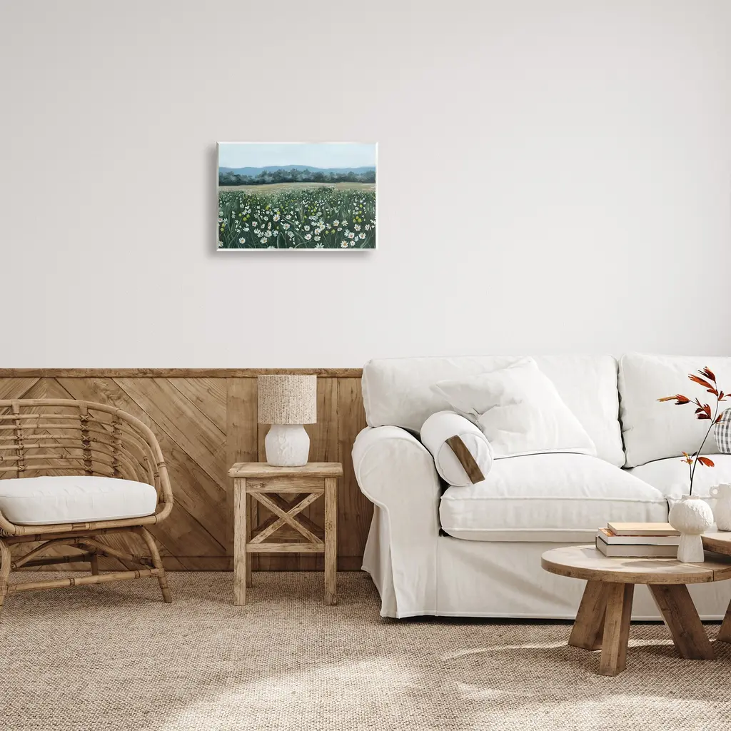 Our wall plaques start as high-quality lithograph prints mounted on durable 0.5-inch thick MDF wood. Each piece is hand finished and comes with a fresh layer of white foil on the sides to give it a crisp, clean look. Plaques arrive ready to hang without installation and come with removable plastic corners to keep them from damage in transit. Stupell Wall Art is made in the USA.Features: Dimensions: 15 x 0.5 x 10 InchesWall Plaque Product Sizes Include 15"x10" and 19"x13". All wall plaque products have a 0.5" Depth. Wall Art is Ready to Hang with Hardware Free Hanging. No installation required. For Easy Set Up Lean or Layer Artwork on Shelf or Against Wall.All of our wall plaques start off as high quality lithograph prints that are then mounted on durable 0.5 inch thick MDF wood. Each piece is hand finished and comes with a fresh layer of foil on the sides to give it a crisp clean look. Made In USA.Artwork Relates To: Painting, Daisy, Flower, Plant, Field, Grassland, Nature, Countryside, Meadow, Rural, Grass, Landscape, SceneryDesign by Grace Popp