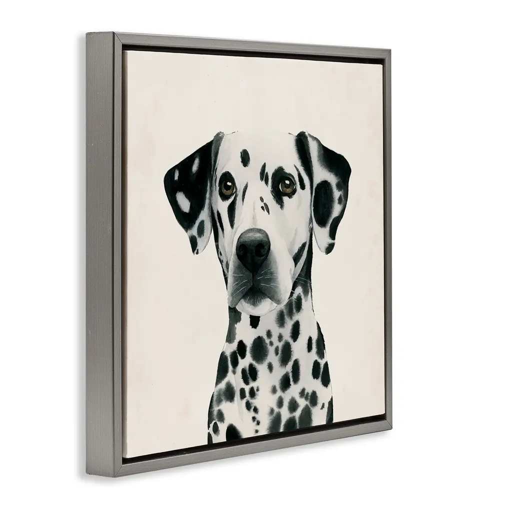Elevate your home or office to the next level with Stupell Framed Floating Canvas Wall Art. Our premium hand-stretched canvas is mounted securely into a sturdy lightweight frame. The museum-style gap between the wrapped canvas and the box frame gives the illusion of floating artwork. Stupell Wall Art is made in the USA.Features: Dimensions: 18 x 1.7 x 18 Frame, 17 x 1.5 x 17 Canvas ArtFloating Frame Canvas Products are available in sizes 18"x18" and 25"x25". All Floating Frame Canvas Products have a 1.7" Depth.Wall Art is Ready to Hang with Hardware Free Hanging. No Installation required. For Easy Set Up Lean or Layer Artwork on Shelf or Against Wall. Artwork is Permently Fixed into the Frame.Our elevated 1.7" Thick Floating Frame is the perfect complement to our canvas style Wall Art. We use only the highest quality inks in house with industry leading printing solutions. Canvas is hand stretched over a durable wood foundation and then mounted securly into a Modern Box Frame. Made in the USA.Artwork Relates To: Animal, Pet, Dog, Portrait, Dalmation, Minimal, TraditionalDesign by Grace Popp