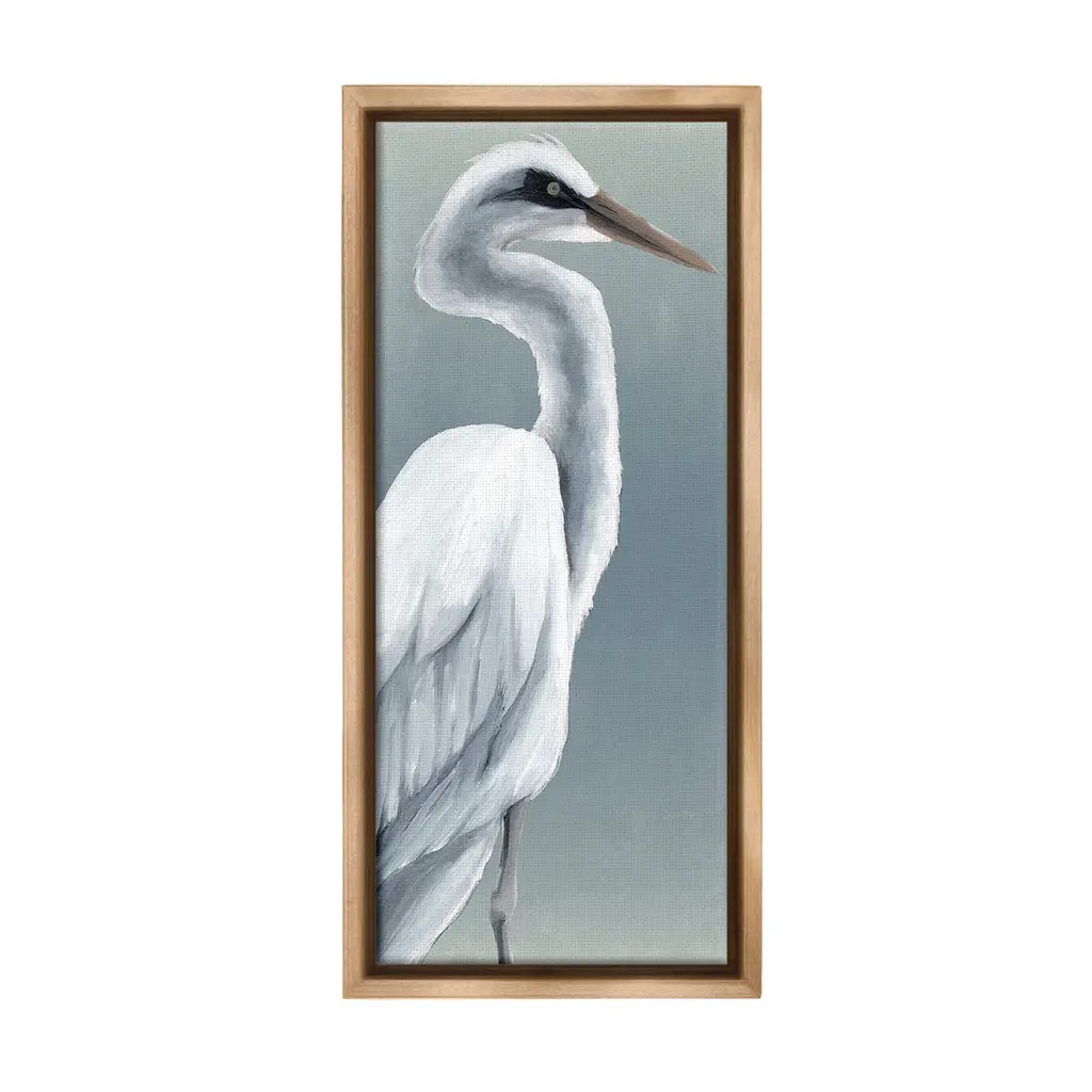 Elevate your home or office to the next level with Stupell Framed Floating Canvas Wall Art. Our premium hand-stretched canvas is mounted securely into a sturdy lightweight frame. The museum-style gap between the wrapped canvas and the box frame gives the illusion of floating artwork. Stupell Wall Art is made in the USA.Features: Dimensions: 11 x 1.7 x 25 Frame, 10 x 1.5 x 24 Canvas ArtFloating Frame Canvas Products are available in sizes 11"x25" and 14"x31". All Floating Frame Canvas Products have a 1.7" Depth.Wall Art is Ready to Hang with Hardware Free Hanging. No Installation required. For Easy Set Up Lean or Layer Artwork on Shelf or Against Wall. Artwork is Permently Fixed into the Frame.Our elevated 1.7" Thick Floating Frame is the perfect complement to our canvas style Wall Art. We use only the highest quality inks in house with industry leading printing solutions. Canvas is hand stretched over a durable wood foundation and then mounted securly into a Modern Box Frame. Made in the USA.Artwork Relates To: Animal, Bird, Waterfowl, Crane Bird, Heron, Egret, Nautical, Beach, TraditionalDesign by Grace Popp