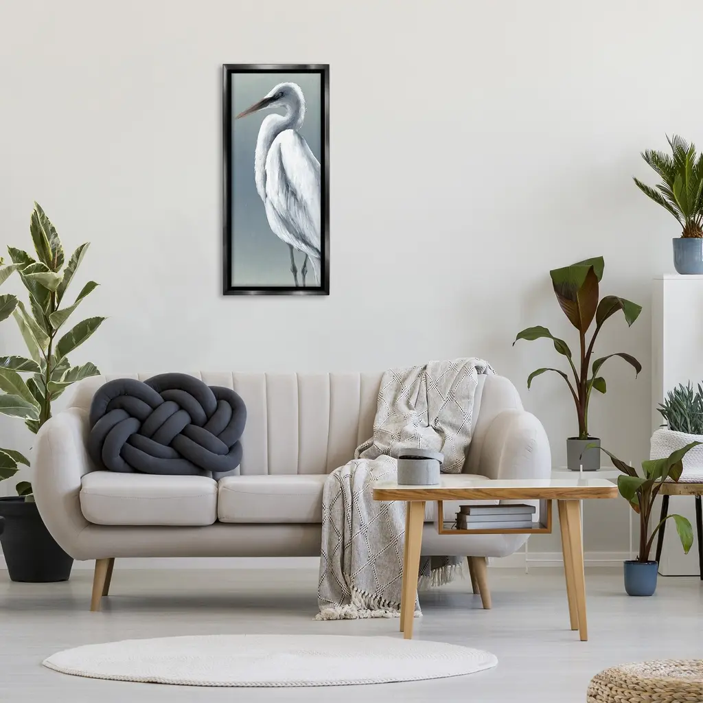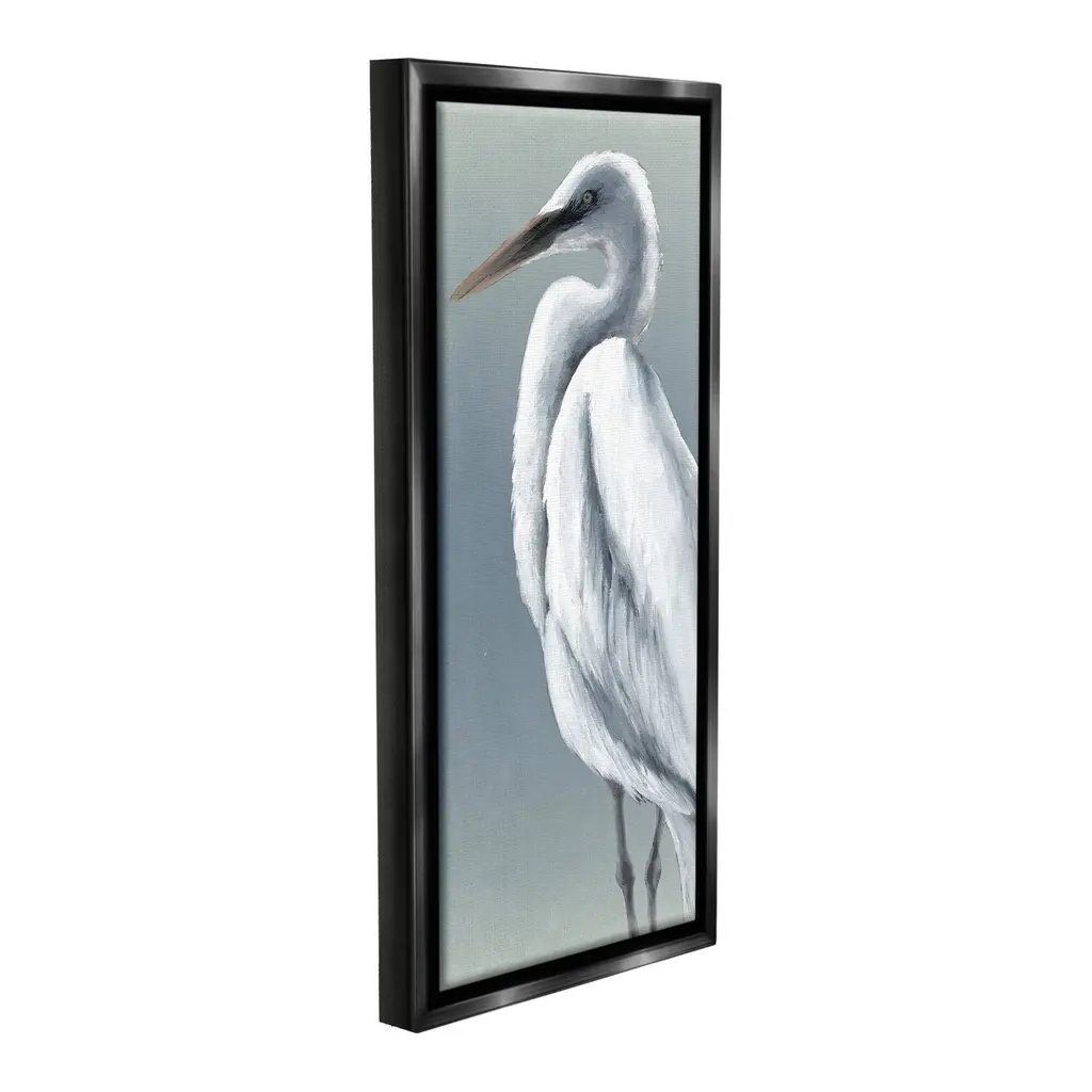 Elevate your home or office to the next level with Stupell Framed Floating Canvas Wall Art. Our premium hand-stretched canvas is mounted securely into a sturdy lightweight frame. The museum-style gap between the wrapped canvas and the box frame gives the illusion of floating artwork. Stupell Wall Art is made in the USA.Features: Dimensions: 11 x 1.7 x 25 Frame, 10 x 1.5 x 24 Canvas ArtFloating Frame Canvas Products are available in sizes 11"x25" and 14"x31". All Floating Frame Canvas Products have a 1.7" Depth.Wall Art is Ready to Hang with Hardware Free Hanging. No Installation required. For Easy Set Up Lean or Layer Artwork on Shelf or Against Wall. Artwork is Permently Fixed into the Frame.Our elevated 1.7" Thick Floating Frame is the perfect complement to our canvas style Wall Art. We use only the highest quality inks in house with industry leading printing solutions. Canvas is hand stretched over a durable wood foundation and then mounted securly into a Modern Box Frame. Made in the USA.Artwork Relates To: Animal, Bird, Waterfowl, Crane Bird, Heron, Egret, Nautical, Beach, TraditionalDesign by Grace Popp