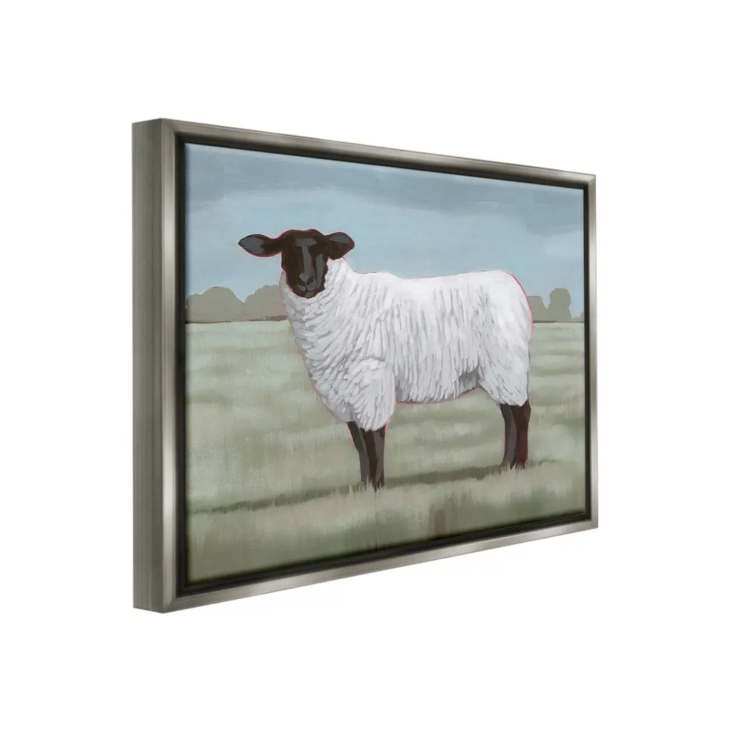Elevate your home or office to the next level with Stupell Framed Floating Canvas Wall Art. Our premium hand-stretched canvas is mounted securely into a sturdy lightweight frame. The museum-style gap between the wrapped canvas and the box frame gives the illusion of floating artwork. Stupell Wall Art is made in the USA.Features: Dimensions: 21 x 1.7 x 17 Frame, 20 x 1.5 x 16 Canvas ArtFloating Frame Canvas Products are available in sizes 21"x17" and 31"x25". All Floating Frame Canvas Products have a 1.7" Depth.Wall Art is Ready to Hang with Hardware Free Hanging. No Installation required. For Easy Set Up Lean or Layer Artwork on Shelf or Against Wall. Artwork is Permently Fixed into the Frame.Our elevated 1.7" Thick Floating Frame is the perfect complement to our canvas style Wall Art. We use only the highest quality inks in house with industry leading printing solutions. Canvas is hand stretched over a durable wood foundation and then mounted securly into a Modern Box Frame. Made in the USA.Artwork Relates To: Animal, Mammal, Sheep, Landscape, Farm, Country, PaintingDesign by Grace Popp