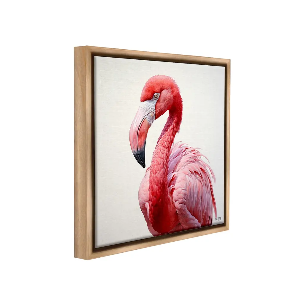 Elevate your home or office to the next level with Stupell Framed Floating Canvas Wall Art. Our premium hand-stretched canvas is mounted securely into a sturdy lightweight frame. The museum-style gap between the wrapped canvas and the box frame gives the illusion of floating artwork. Stupell Wall Art is made in the USA.Features: Dimensions: 18 x 1.7 x 18 Frame, 17 x 1.5 x 17 Canvas ArtFloating Frame Canvas Products are available in sizes 18"x18" and 25"x25". All Floating Frame Canvas Products have a 1.7" Depth.Wall Art is Ready to Hang with Hardware Free Hanging. No Installation required. For Easy Set Up Lean or Layer Artwork on Shelf or Against Wall. Artwork is Permently Fixed into the Frame.Our elevated 1.7" Thick Floating Frame is the perfect complement to our canvas style Wall Art. We use only the highest quality inks in house with industry leading printing solutions. Canvas is hand stretched over a durable wood foundation and then mounted securly into a Modern Box Frame. Made in the USA.Artwork Relates To: Animal, Beak, Bird, Flamingo, Minimal, PortraitDesign by RB