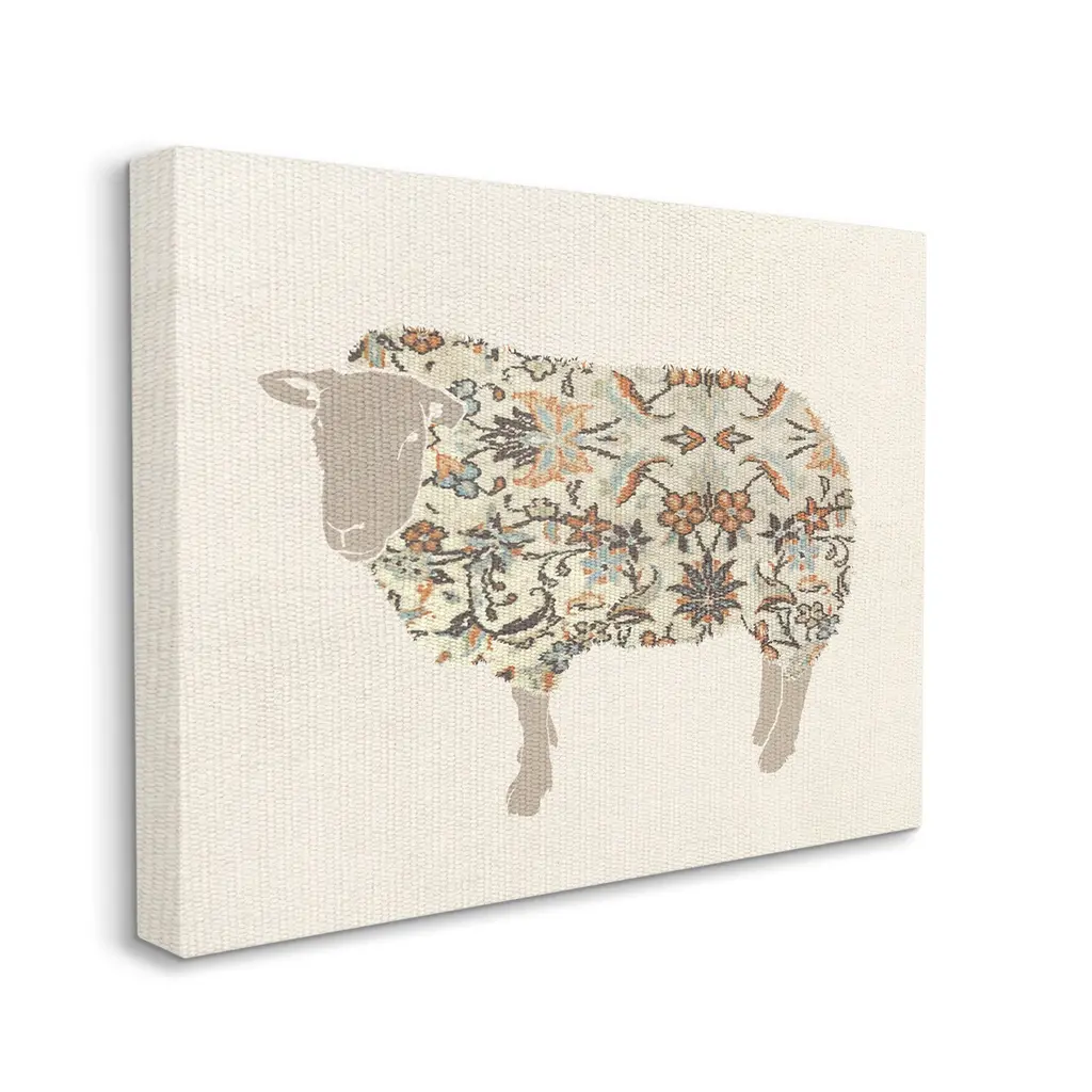 We create our stretched canvas to the highest standards. Using only the highest quality inks and canvas on Mimaki printers, we hand-cut and stretch each piece over a 1.5-inch thick wooden frame for hanging. As a result, the art comes ready to hang on the sturdy ledge with no installation required. Stupell Wall Art is made in the USA.Features: Dimensions: 20 x 1.5 x 16 InchesStretched Canvas Sizes Include Standard: 20 x 1.5 x 16 Large: 30 x 1.5 x 20 X-Large: 40 x 1.5 x 30 Oversized: 48 x 1.5 x 36Wall Art is Ready to Hang with Hardware Free Hanging. No installation required. For Easy Set Up Lean or Layer Artwork on Shelf or Against Wall.Our stretched canvas is created with the highest standards. We use only the highest quality inks and canvas on our in house Mimaki printers, and then hand cut and stretch each piece over a 1.5 inch thick wooden frame for hanging. Made In USA.Artwork Relates To: Tapestry, Pattern, Animal, Mammal, Pet, Sheep, Faux Embroidery, Stitch, Floral Design Design by Lil' Rue