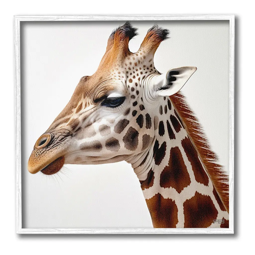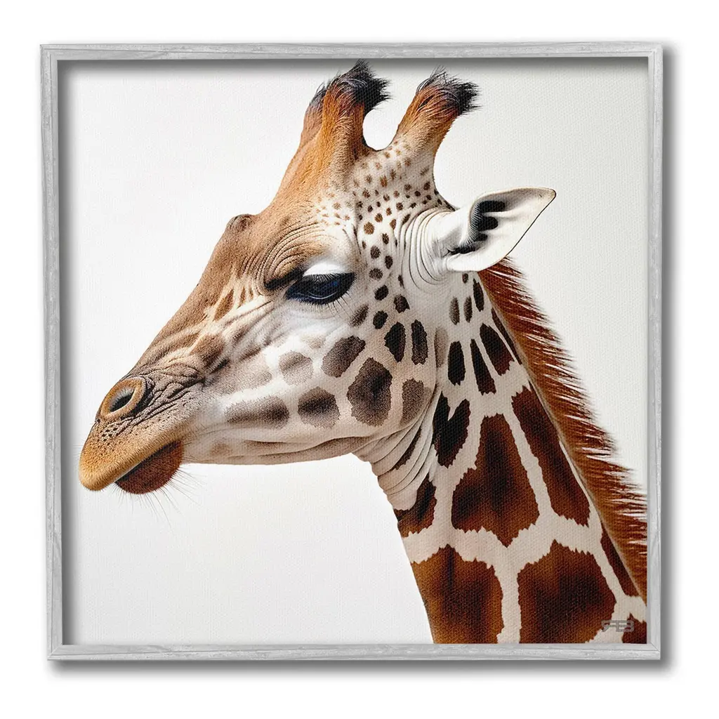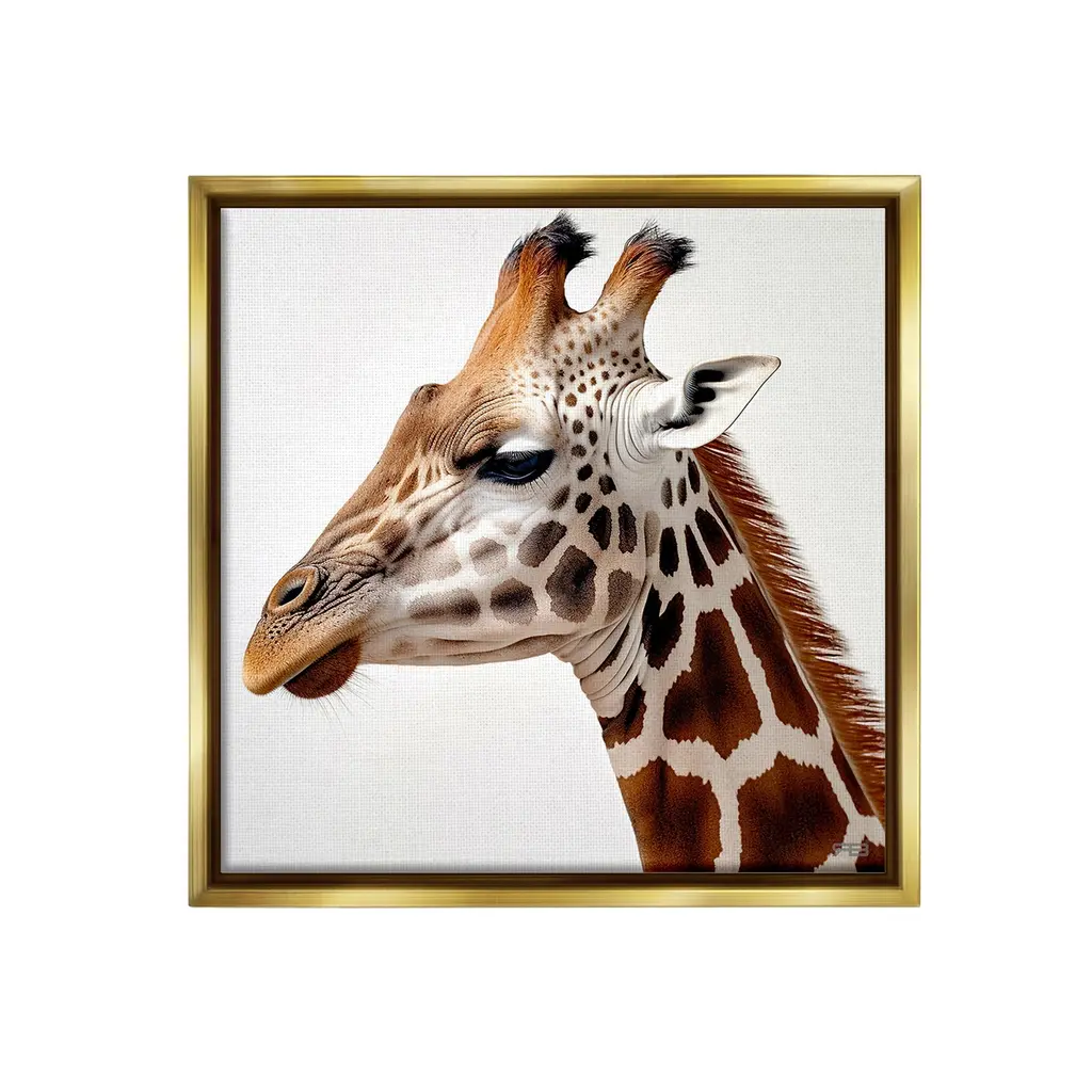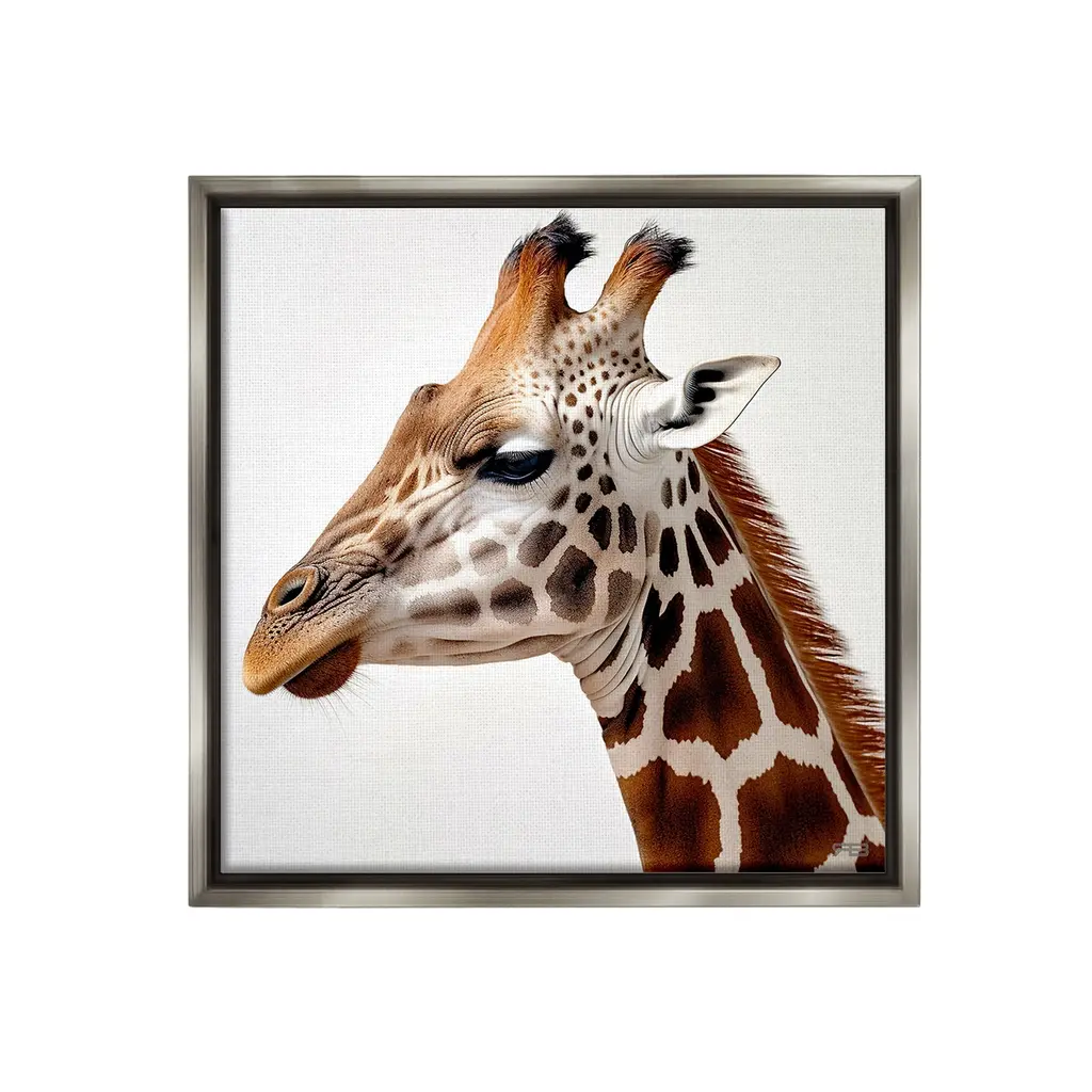 Elevate your home or office to the next level with Stupell Framed Floating Canvas Wall Art. Our premium hand-stretched canvas is mounted securely into a sturdy lightweight frame. The museum-style gap between the wrapped canvas and the box frame gives the illusion of floating artwork. Stupell Wall Art is made in the USA.Features: Dimensions: 18 x 1.7 x 18 Frame, 17 x 1.5 x 17 Canvas ArtFloating Frame Canvas Products are available in sizes 18"x18" and 25"x25". All Floating Frame Canvas Products have a 1.7" Depth.Wall Art is Ready to Hang with Hardware Free Hanging. No Installation required. For Easy Set Up Lean or Layer Artwork on Shelf or Against Wall. Artwork is Permently Fixed into the Frame.Our elevated 1.7" Thick Floating Frame is the perfect complement to our canvas style Wall Art. We use only the highest quality inks in house with industry leading printing solutions. Canvas is hand stretched over a durable wood foundation and then mounted securly into a Modern Box Frame. Made in the USA.Artwork Relates To: Animal, Giraffe, Mammal, Wildlife, Portrait, MinimalDesign by RB