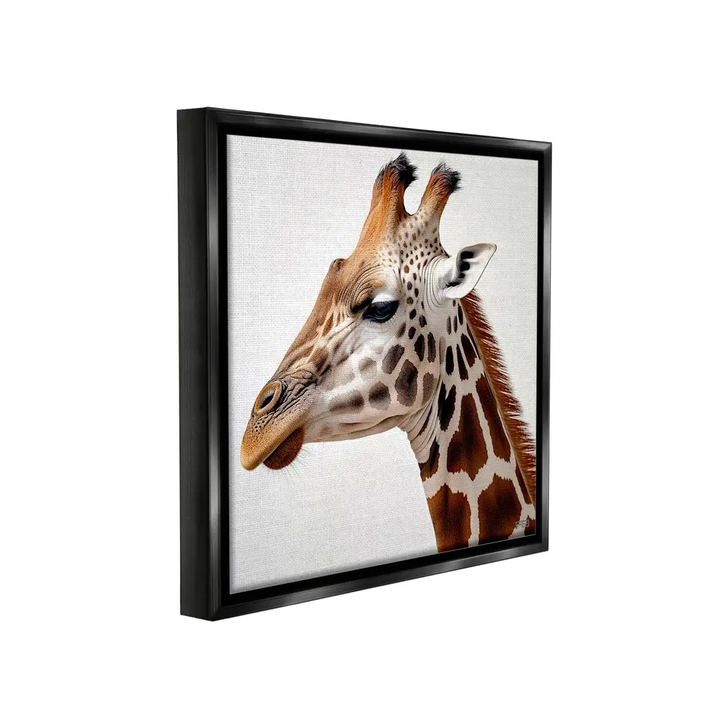 Elevate your home or office to the next level with Stupell Framed Floating Canvas Wall Art. Our premium hand-stretched canvas is mounted securely into a sturdy lightweight frame. The museum-style gap between the wrapped canvas and the box frame gives the illusion of floating artwork. Stupell Wall Art is made in the USA.Features: Dimensions: 18 x 1.7 x 18 Frame, 17 x 1.5 x 17 Canvas ArtFloating Frame Canvas Products are available in sizes 18"x18" and 25"x25". All Floating Frame Canvas Products have a 1.7" Depth.Wall Art is Ready to Hang with Hardware Free Hanging. No Installation required. For Easy Set Up Lean or Layer Artwork on Shelf or Against Wall. Artwork is Permently Fixed into the Frame.Our elevated 1.7" Thick Floating Frame is the perfect complement to our canvas style Wall Art. We use only the highest quality inks in house with industry leading printing solutions. Canvas is hand stretched over a durable wood foundation and then mounted securly into a Modern Box Frame. Made in the USA.Artwork Relates To: Animal, Giraffe, Mammal, Wildlife, Portrait, MinimalDesign by RB
