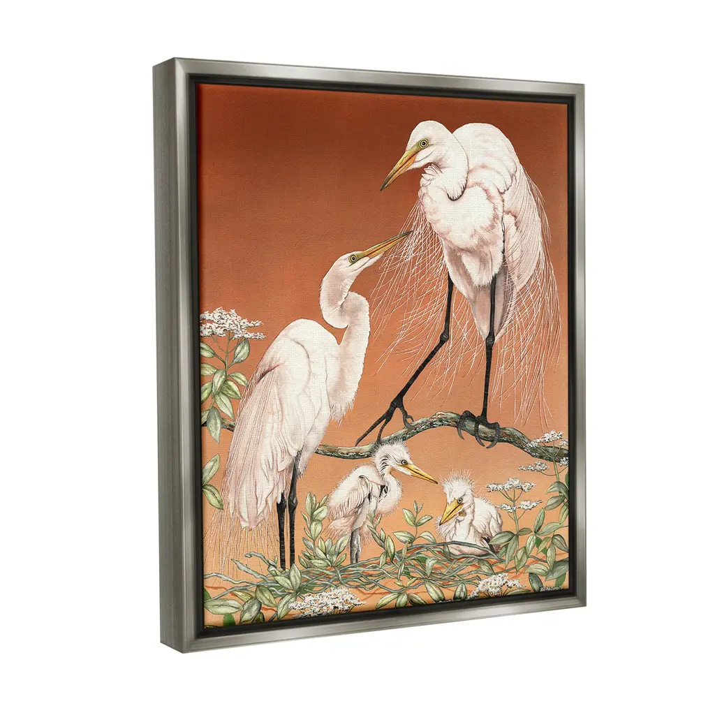 Stupell Traditional Heron Family Framed Floater Canvas Wall Art Design By Christine Reichow - 25 X 31 - Grey