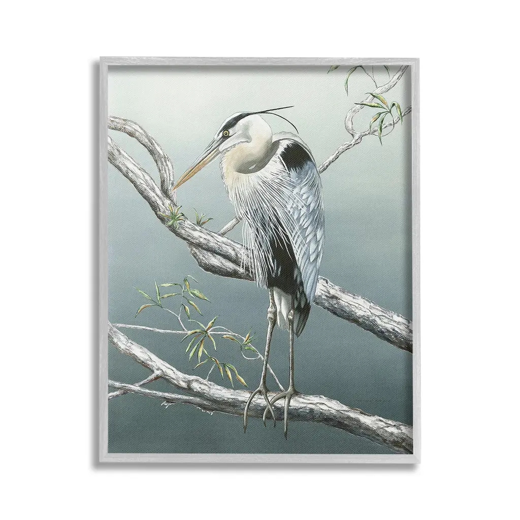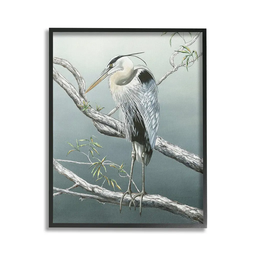 Add dimension to any room with our textured Framed Giclee Artwork. Our framed artwork is securely mounted into a 1.5-inch thick wood grain frame and ready to hang. Frames are available in three alluring styles: black, gray farmhouse and white. In addition, you should check out our oversized options if you want a statement piece. Stupell Wall Art is made in the USA.Features: Dimensions: 11 x 1.5 x 14 FramedFramed Giclee Products are available in the sizes 11"x14", 16"x20" or 24"x30". All Framed Giclee Products have a 1.5" Depth. Wall Art is Ready to Hang with Hardware Free Hanging. No installation required. For Easy Set Up Lean or Layer Artwork on Shelf or Against Wall.Our giclée prints are carefully mounted on a durable MDF backing, and then perfectly finished in a 1.5 inch thick woodgrain frame. Mounted frame colors include black, gray farmhouse and white. Made In USA.Artwork Relates To: Animal, Bird, Waterfowl, Crane Bird, Heron, Egret, Nature, Branch, Leaf, TreeDesign by Christine Reichow