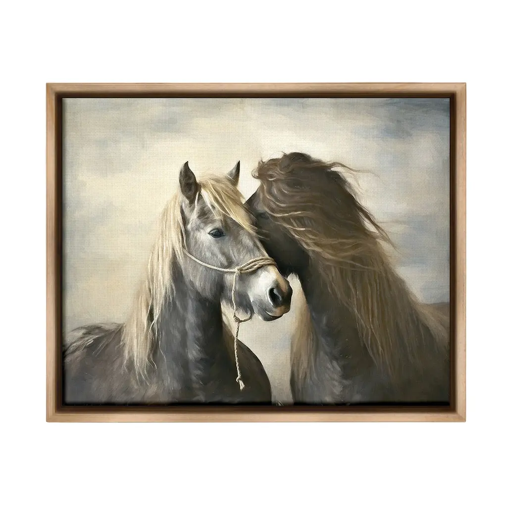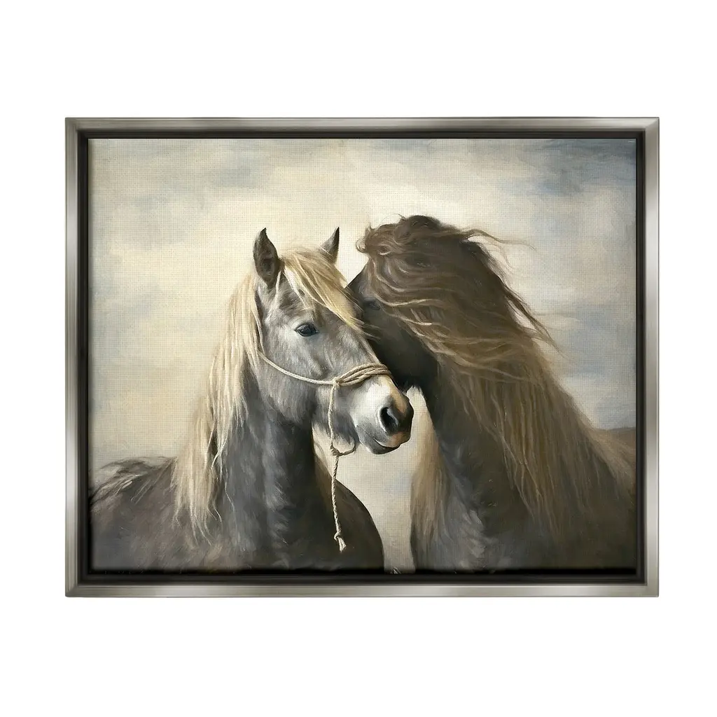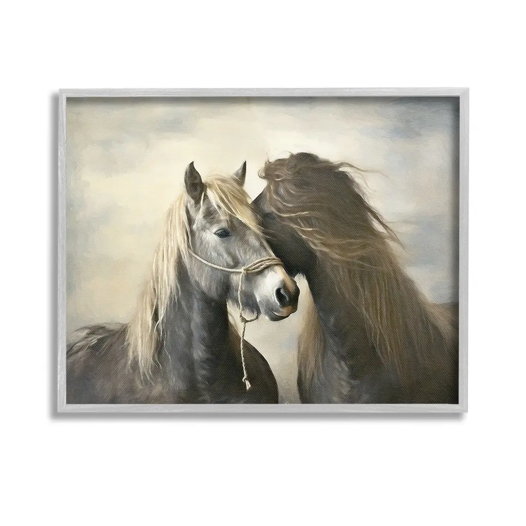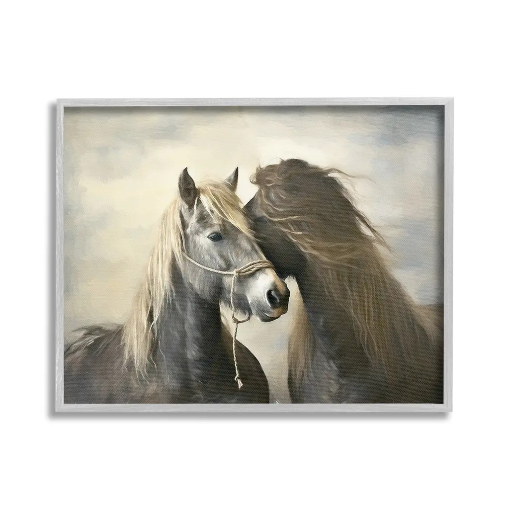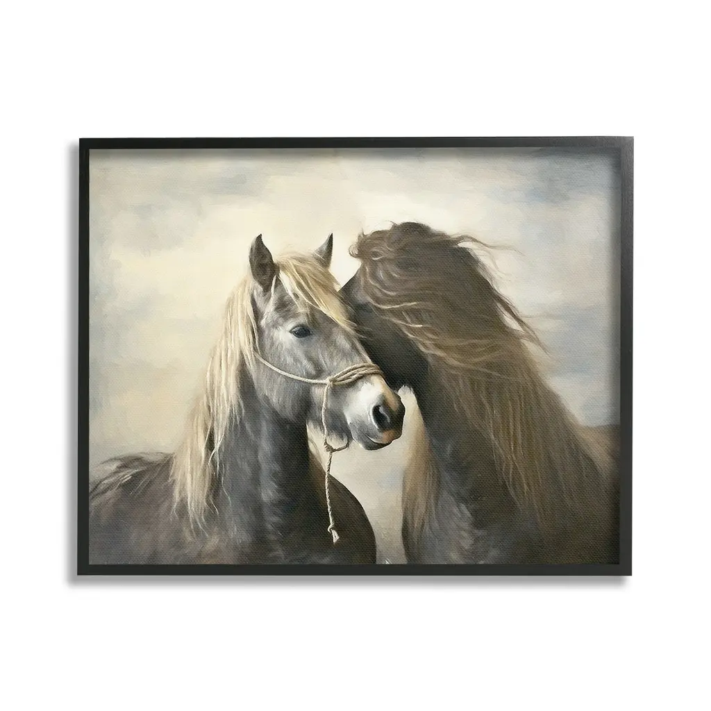 Stupell Traditional Hugging Horses Framed Giclee Art Design By Ramona Murdock - 14 X 11 - Black