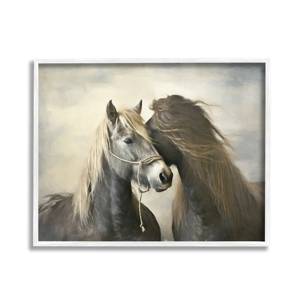 Stupell Traditional Hugging Horses Framed Giclee Art Design By Ramona Murdock - 14 X 11 - Grey