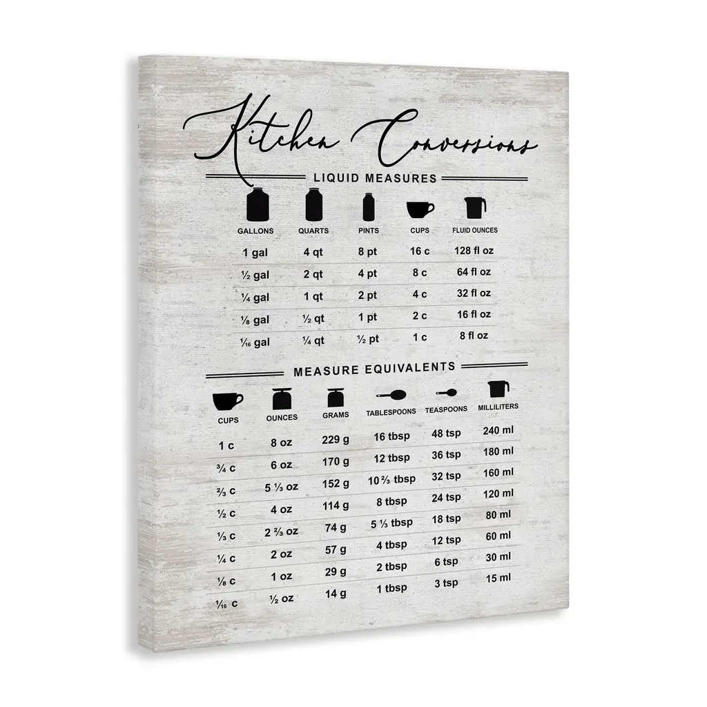 Stupell Traditional Kitchen Conversion Chart Distressed Farmhouse Pattern Canvas Wall Art - Grey - 30 X 40
