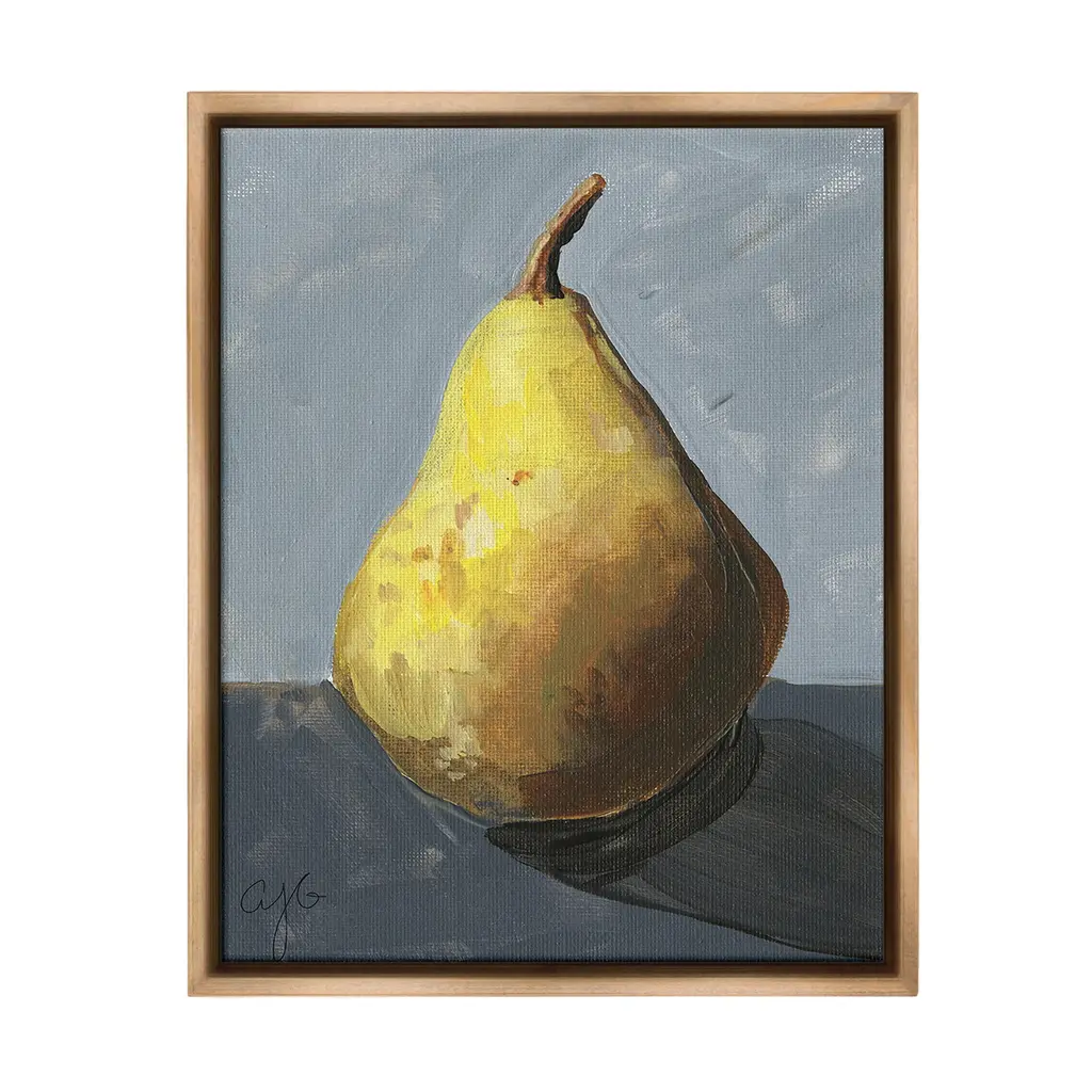 Elevate your home or office to the next level with Stupell Framed Floating Canvas Wall Art. Our premium hand-stretched canvas is mounted securely into a sturdy lightweight frame. The museum-style gap between the wrapped canvas and the box frame gives the illusion of floating artwork. Stupell Wall Art is made in the USA.Features: Dimensions: 17 x 1.7 x 21 Frame, 16 x 1.5 x 20 Canvas ArtFloating Frame Sizes Include Standard: 17 x 1.7 x 21 Oversized: 25 x 1.7 x 31Wall Art is Ready to Hang - No Installation or Hardware Needed. For Easy Set Up Lean or Layer Artwork on Shelf or Against Wall.Our elevated 1.7" Thick Floating Frame is the perfect complement to our canvas style Wall Art. We use only the highest quality inks in house with industry leading printing solutions. Canvas is hand stretched over a durable wood foundation and then mounted securly into a Modern Box Frame. Made in the USA.Artwork Relates To: Food, Fruit, Plant, Produce, Pear, Lotus, Pattern, Kitchen, Traditional, PaintingDesign by Jhenna Quinn Lewis