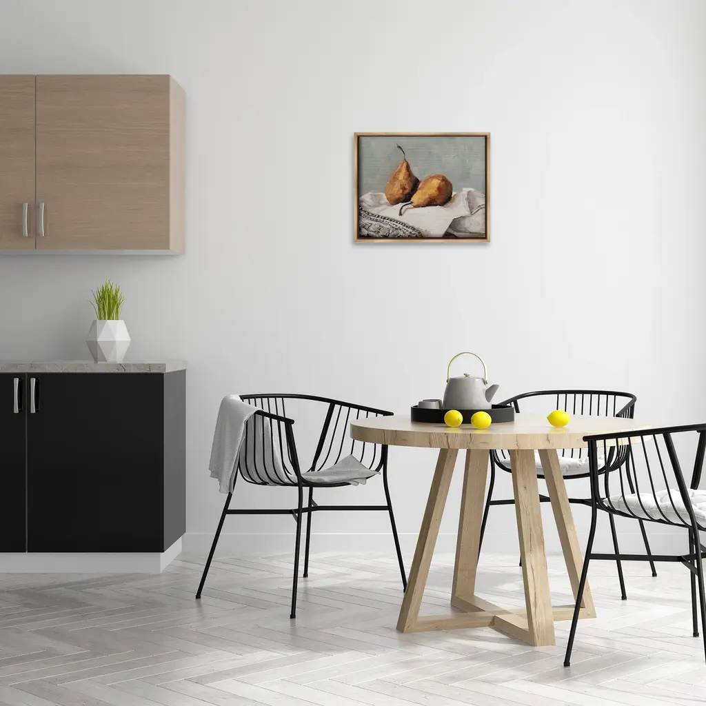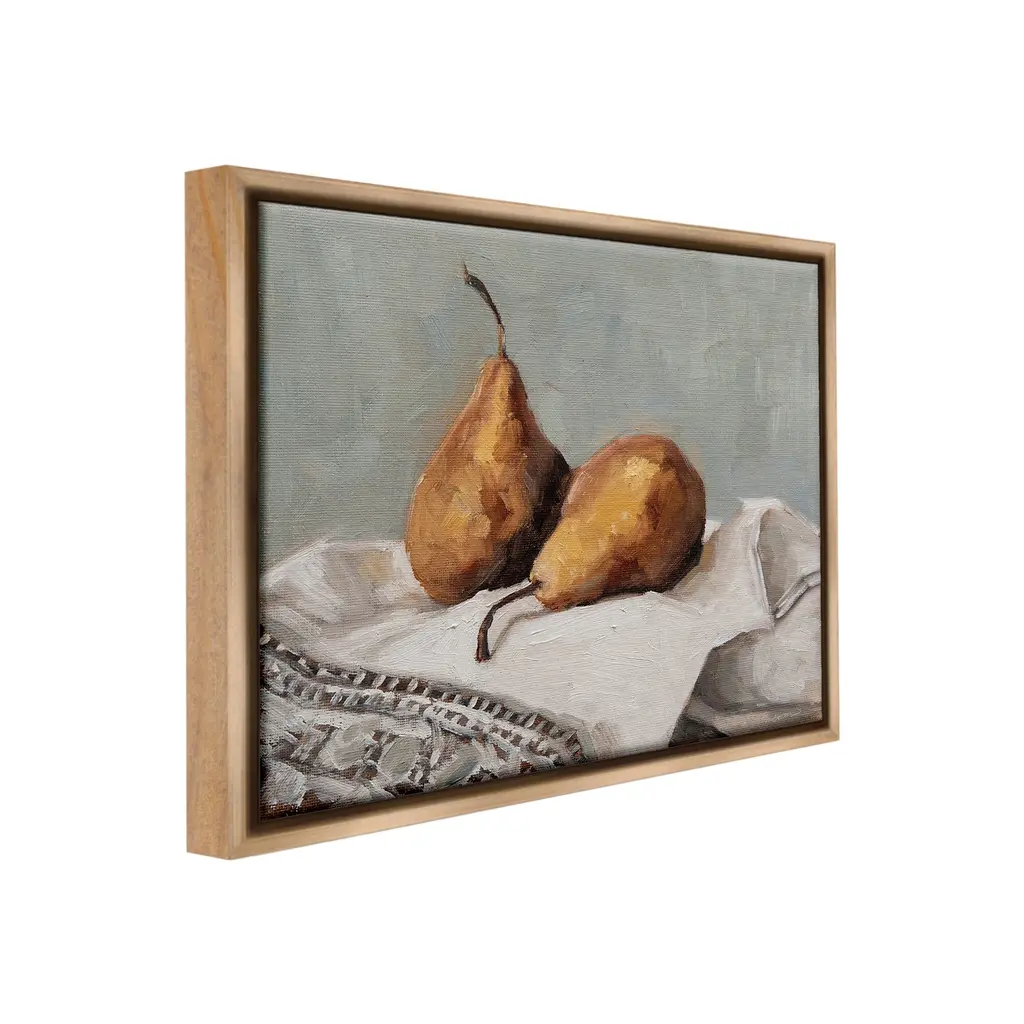 Elevate your home or office to the next level with Stupell Framed Floating Canvas Wall Art. Our premium hand-stretched canvas is mounted securely into a sturdy lightweight frame. The museum-style gap between the wrapped canvas and the box frame gives the illusion of floating artwork. Stupell Wall Art is made in the USA.Features: Dimensions: 21 x 1.7 x 17 Frame, 20 x 1.5 x 16 Canvas ArtFloating Frame Canvas Products are available in sizes 21"x17" and 31"x25". All Floating Frame Canvas Products have a 1.7" Depth.Wall Art is Ready to Hang with Hardware Free Hanging. No Installation required. For Easy Set Up Lean or Layer Artwork on Shelf or Against Wall. Artwork is Permently Fixed into the Frame.Our elevated 1.7" Thick Floating Frame is the perfect complement to our canvas style Wall Art. We use only the highest quality inks in house with industry leading printing solutions. Canvas is hand stretched over a durable wood foundation and then mounted securly into a Modern Box Frame. Made in the USA.Artwork Relates To: Food, Fruit, Plant, Produce, Still Life, Traditional, Country, PearDesign by Marian Parsons