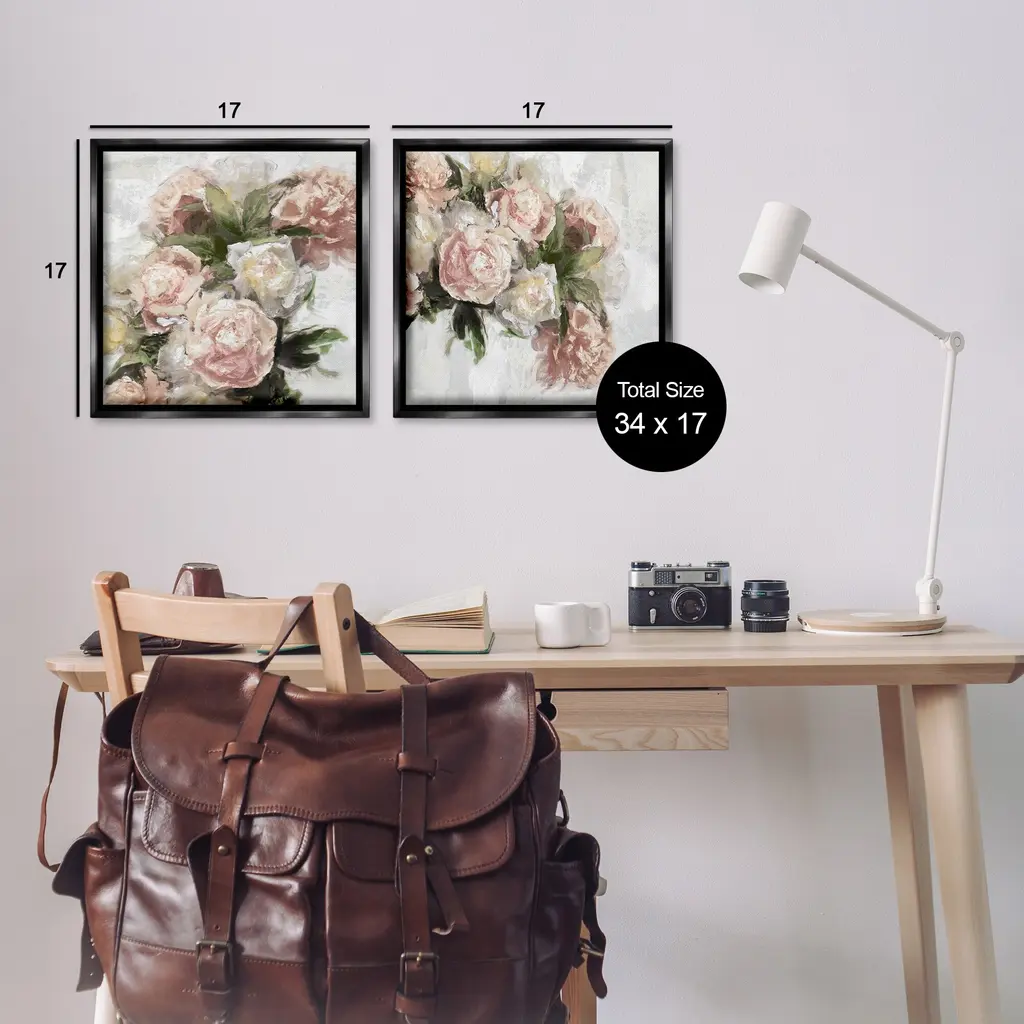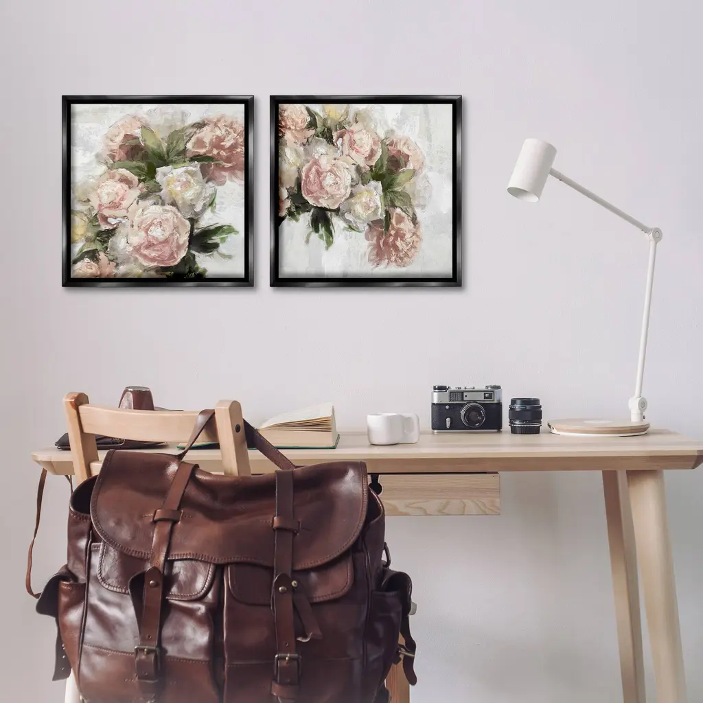 Elevate your home or office to the next level with Stupell Framed Floating Canvas Wall Art. Our premium hand-stretched canvas is mounted securely into a sturdy lightweight frame. The museum-style gap between the wrapped canvas and the box frame gives the illusion of floating artwork. Stupell Wall Art is made in the USA.Features: Dimensions: 2 Piece Set, Each Frame is 18 x 1.7 x 18Two Piece Floating Frame Canvas Products are available as 18"x18" or 25"x25" Panels. All Floating Frame Canvas Products have a 1.7" Depth.Wall Art is Ready to Hang with Hardware Free Hanging. No Installation required. For Easy Set Up Lean or Layer Artwork on Shelf or Against Wall. Artwork is Permently Fixed into the Frame.Our elevated 1.7" Thick Floating Frame is the perfect complement to our canvas style Wall Art. We use only the highest quality inks in house with industry leading printing solutions. Canvas is hand stretched over a durable wood foundation and then mounted securly into a Modern Box Frame. Made in the USA.Artwork Relates To: Floral, Flower, Plant, Rose, Blossom, PeonyDesign by Emily Ford