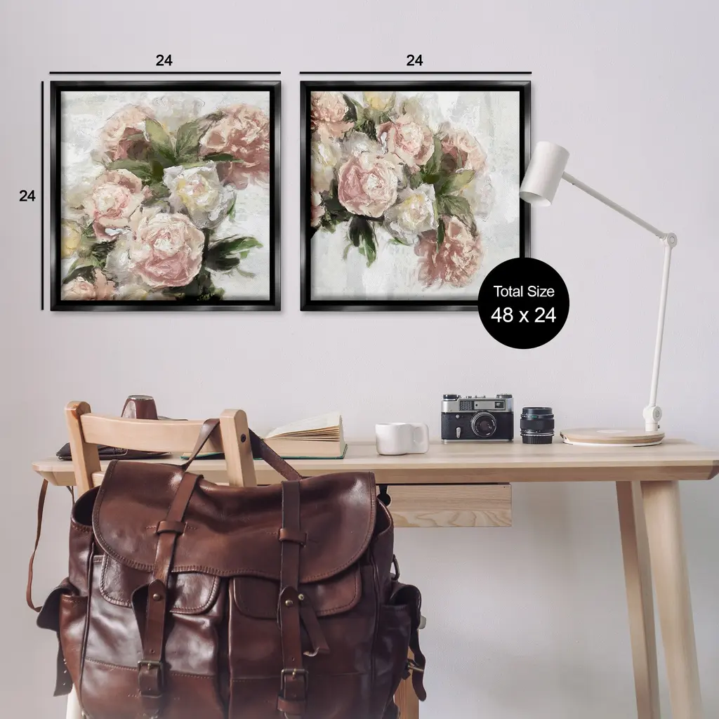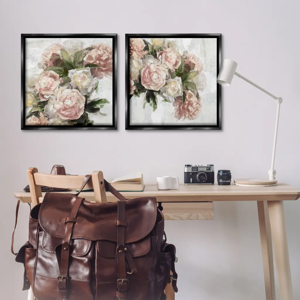 Elevate your home or office to the next level with Stupell Framed Floating Canvas Wall Art. Our premium hand-stretched canvas is mounted securely into a sturdy lightweight frame. The museum-style gap between the wrapped canvas and the box frame gives the illusion of floating artwork. Stupell Wall Art is made in the USA.Features: Dimensions: 2 Piece Set, Each Frame is 18 x 1.7 x 18Two Piece Floating Frame Canvas Products are available as 18"x18" or 25"x25" Panels. All Floating Frame Canvas Products have a 1.7" Depth.Wall Art is Ready to Hang with Hardware Free Hanging. No Installation required. For Easy Set Up Lean or Layer Artwork on Shelf or Against Wall. Artwork is Permently Fixed into the Frame.Our elevated 1.7" Thick Floating Frame is the perfect complement to our canvas style Wall Art. We use only the highest quality inks in house with industry leading printing solutions. Canvas is hand stretched over a durable wood foundation and then mounted securly into a Modern Box Frame. Made in the USA.Artwork Relates To: Floral, Flower, Plant, Rose, Blossom, PeonyDesign by Emily Ford