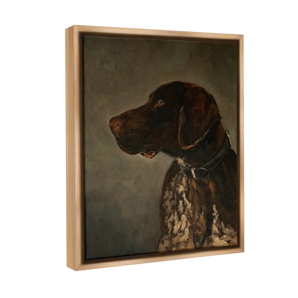 Elevate your home or office to the next level with Stupell Framed Floating Canvas Wall Art. Our premium hand-stretched canvas is mounted securely into a sturdy lightweight frame. The museum-style gap between the wrapped canvas and the box frame gives the illusion of floating artwork. Stupell Wall Art is made in the USA.Features: Dimensions: 17 x 1.7 x 21 Frame, 16 x 1.5 x 20 Canvas ArtFloating Frame Canvas Products are available in sizes 17"x21" and 25"x31". All Floating Frame Canvas Products have a 1.7" Depth.Wall Art is Ready to Hang with Hardware Free Hanging. No Installation required. For Easy Set Up Lean or Layer Artwork on Shelf or Against Wall. Artwork is Permently Fixed into the Frame.Our elevated 1.7" Thick Floating Frame is the perfect complement to our canvas style Wall Art. We use only the highest quality inks in house with industry leading printing solutions. Canvas is hand stretched over a durable wood foundation and then mounted securly into a Modern Box Frame. Made in the USA.Artwork Relates To: Painting, Animal, Canine, Dog, Mammal, Pet, Pointer, Traditional, Portrait, VintageDesign by Marian Parsons