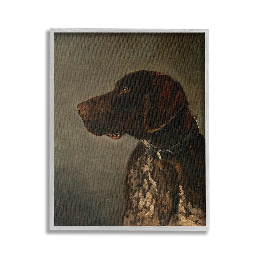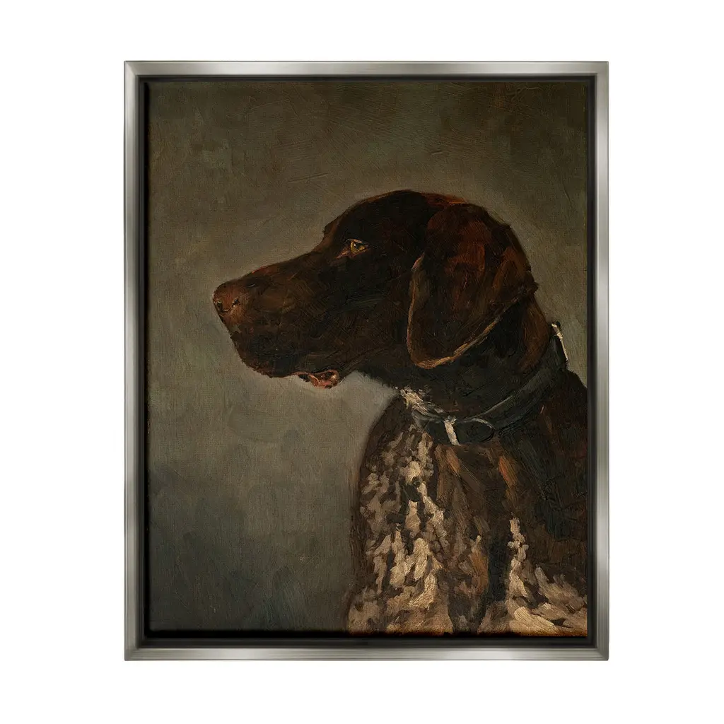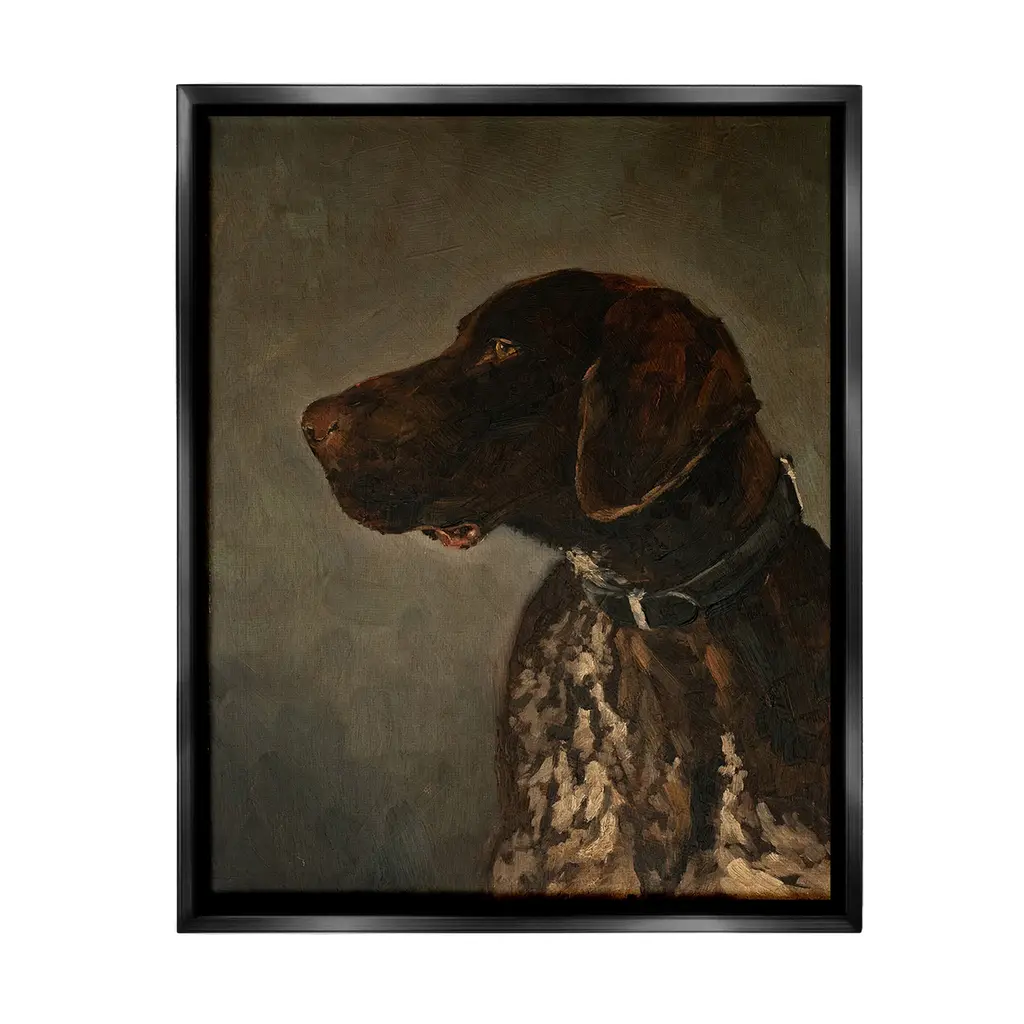 Elevate your home or office to the next level with Stupell Framed Floating Canvas Wall Art. Our premium hand-stretched canvas is mounted securely into a sturdy lightweight frame. The museum-style gap between the wrapped canvas and the box frame gives the illusion of floating artwork. Stupell Wall Art is made in the USA.Features: Dimensions: 17 x 1.7 x 21 Frame, 16 x 1.5 x 20 Canvas ArtFloating Frame Canvas Products are available in sizes 17"x21" and 25"x31". All Floating Frame Canvas Products have a 1.7" Depth.Wall Art is Ready to Hang with Hardware Free Hanging. No Installation required. For Easy Set Up Lean or Layer Artwork on Shelf or Against Wall. Artwork is Permently Fixed into the Frame.Our elevated 1.7" Thick Floating Frame is the perfect complement to our canvas style Wall Art. We use only the highest quality inks in house with industry leading printing solutions. Canvas is hand stretched over a durable wood foundation and then mounted securly into a Modern Box Frame. Made in the USA.Artwork Relates To: Painting, Animal, Canine, Dog, Mammal, Pet, Pointer, Traditional, Portrait, VintageDesign by Marian Parsons