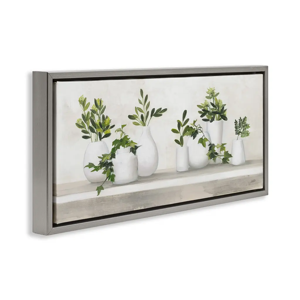 Elevate your home or office to the next level with Stupell Framed Floating Canvas Wall Art. Our premium hand-stretched canvas is mounted securely into a sturdy lightweight frame. The museum-style gap between the wrapped canvas and the box frame gives the illusion of floating artwork. Stupell Wall Art is made in the USA.Features: Dimensions: 25 x 1.7 x 11 Frame, 24 x 1.5 x 10 Canvas ArtFloating Frame Canvas Products are available in sizes 25"x11" and 31"x14". All Floating Frame Canvas Products have a 1.7" Depth.Wall Art is Ready to Hang with Hardware Free Hanging. No Installation required. For Easy Set Up Lean or Layer Artwork on Shelf or Against Wall. Artwork is Permently Fixed into the Frame.Our elevated 1.7" Thick Floating Frame is the perfect complement to our canvas style Wall Art. We use only the highest quality inks in house with industry leading printing solutions. Canvas is hand stretched over a durable wood foundation and then mounted securly into a Modern Box Frame. Made in the USA.Artwork Relates To: Plant, Botanical, Leaf, Herb, Vase, Country, Still LifeDesign by Julia Purinton