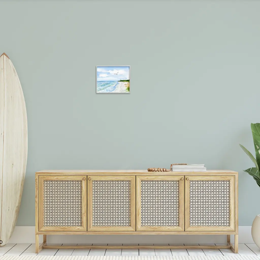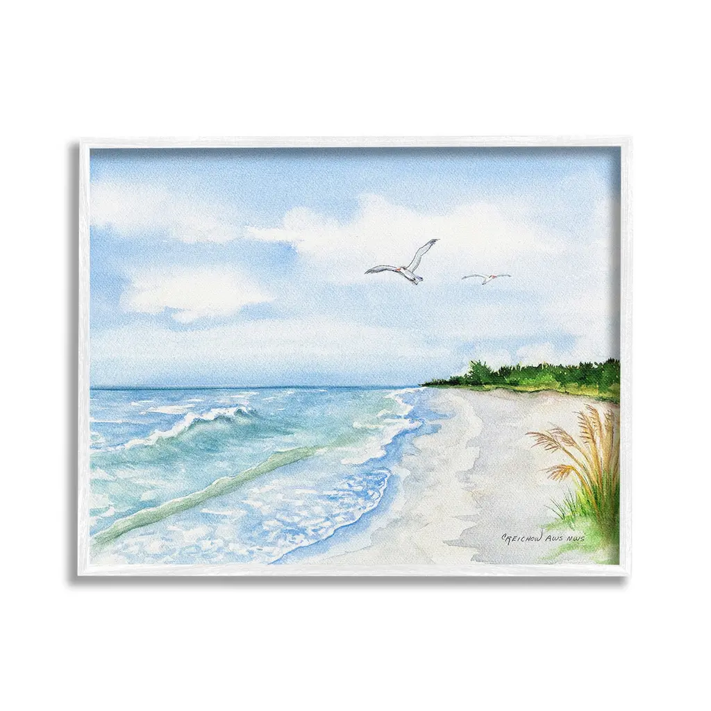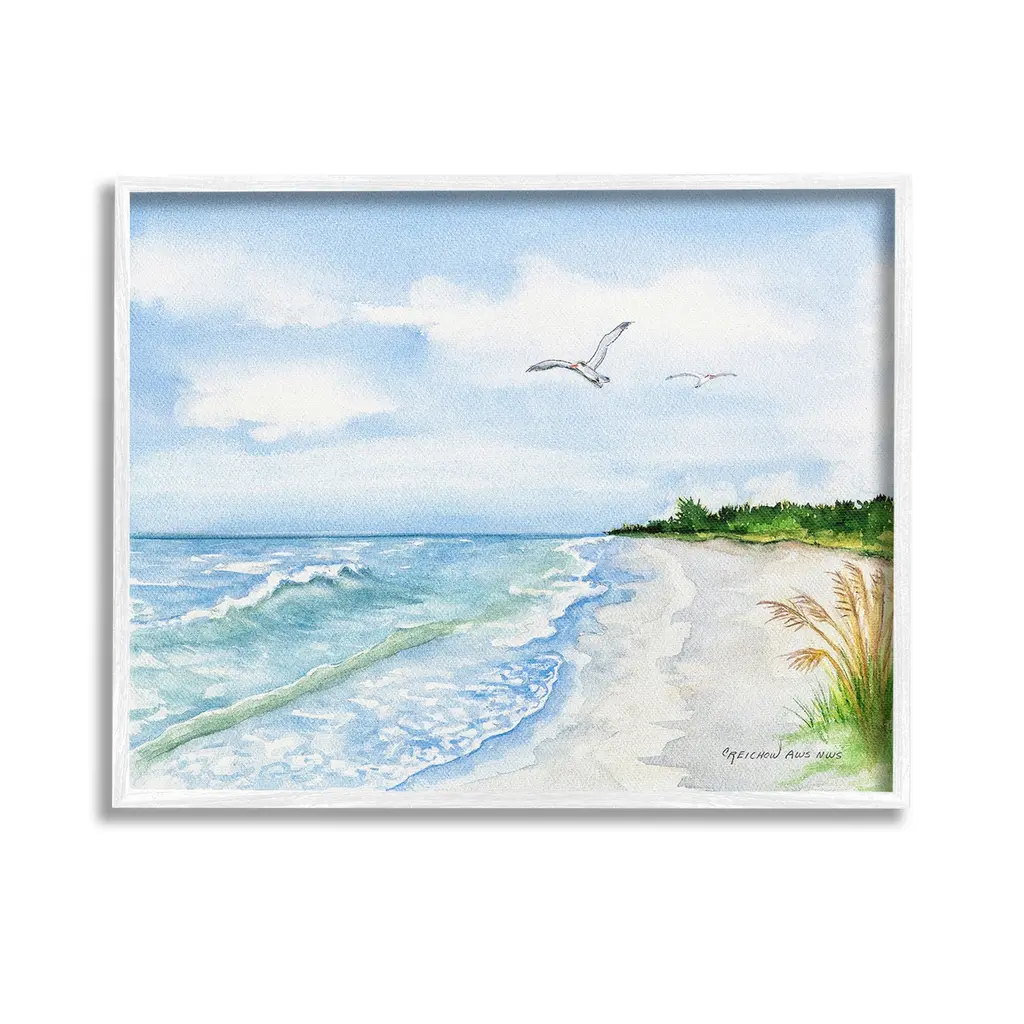 Add dimension to any room with our textured Framed Giclee Artwork. Our framed artwork is securely mounted into a 1.5-inch thick wood grain frame and ready to hang. Frames are available in three alluring styles: black, gray farmhouse and white. In addition, you should check out our oversized options if you want a statement piece. Stupell Wall Art is made in the USA.Features: Dimensions: 14 x 1.5 x 11 FramedFramed Giclee Products are available in the sizes 14"x11", 20"x16" or 30"x24". All Framed Giclee Products have a 1.5" Depth. Wall Art is Ready to Hang with Hardware Free Hanging. No installation required. For Easy Set Up Lean or Layer Artwork on Shelf or Against Wall.Our giclée prints are carefully mounted on a durable MDF backing, and then perfectly finished in a 1.5 inch thick woodgrain frame. Mounted frame colors include black, gray farmhouse and white. Made In USA.Artwork Relates To: Sky, Horizon, Sea, Water, Beach, Coast, Shoreline, Scenery, Sea Waves, Summer, Animal, Bird, SeagullDesign by Christine Reichow