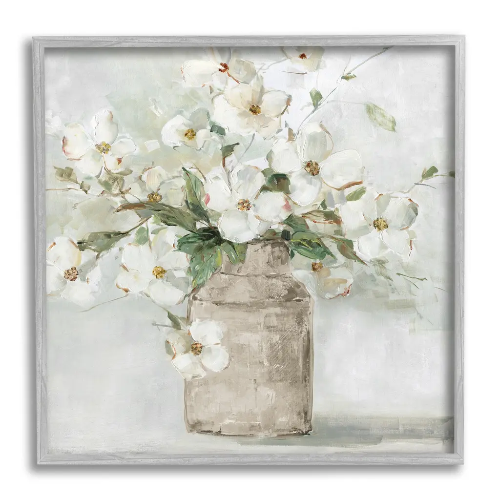 Stupell Traditional White Blooms Flower Arrangement Still Life Framed Wall Art, Design By Sally Swatland - 24 X 24 - Grey