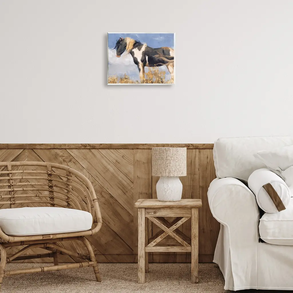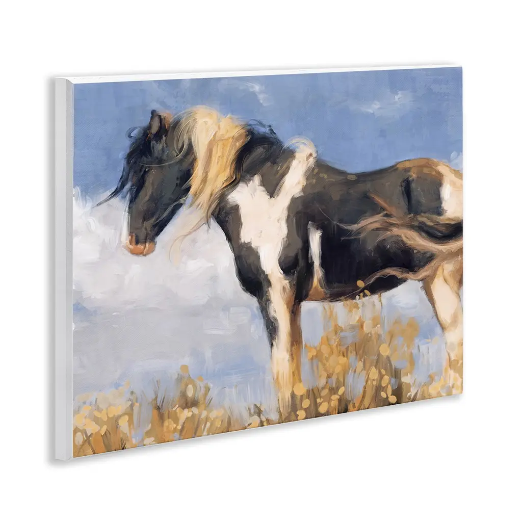 Our wall plaques start as high-quality lithograph prints mounted on durable 0.5-inch thick MDF wood. Each piece is hand finished and comes with a fresh layer of white foil on the sides to give it a crisp, clean look. Plaques arrive ready to hang without installation and come with removable plastic corners to keep them from damage in transit. Stupell Wall Art is made in the USA.Features: Dimensions: 14 x 0.5 x 11 InchesWall Art is Ready to Hang with Hardware Free Hanging. No installation required. For Easy Set Up Lean or Layer Artwork on Shelf or Against Wall.All of our wall plaques start off as high quality lithograph prints that are then mounted on durable 0.5 inch thick MDF wood. Each piece is hand finished and comes with a fresh layer of foil on the sides to give it a crisp clean look. Made In USA.Artwork Relates To: Animal, Mammal, Painting, Colt Horse, Horse, Stallion, LandscapeDesign by Nina Blue