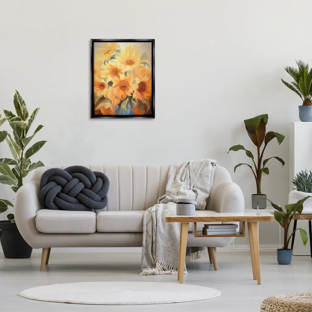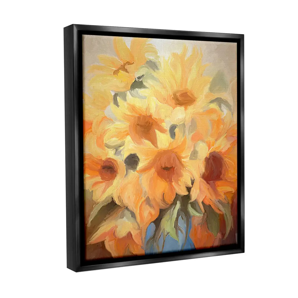 Elevate your home or office to the next level with Stupell Framed Floating Canvas Wall Art. Our premium hand-stretched canvas is mounted securely into a sturdy lightweight frame. The museum-style gap between the wrapped canvas and the box frame gives the illusion of floating artwork. Stupell Wall Art is made in the USA.Features: Dimensions: 17 x 1.7 x 21 Frame, 16 x 1.5 x 20 Canvas ArtFloating Frame Canvas Products are available in sizes 17"x21" and 25"x31". All Floating Frame Canvas Products have a 1.7" Depth.Wall Art is Ready to Hang with Hardware Free Hanging. No Installation required. For Easy Set Up Lean or Layer Artwork on Shelf or Against Wall. Artwork is Permently Fixed into the Frame.Our elevated 1.7" Thick Floating Frame is the perfect complement to our canvas style Wall Art. We use only the highest quality inks in house with industry leading printing solutions. Canvas is hand stretched over a durable wood foundation and then mounted securly into a Modern Box Frame. Made in the USA.Artwork Relates To: Painting, Modern, Flower, Plant, Sunflower, Petal, Floral, Bouquet, Sunflower, TraditionalDesign by Ramona Murdock