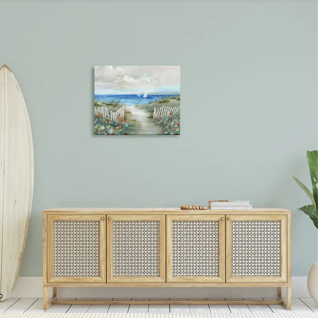 Stupell Tranquil Beachside Flower Meadow Ocean Sailboats Scene Canvas Wall Art, Design By Nan - 30 X 24
