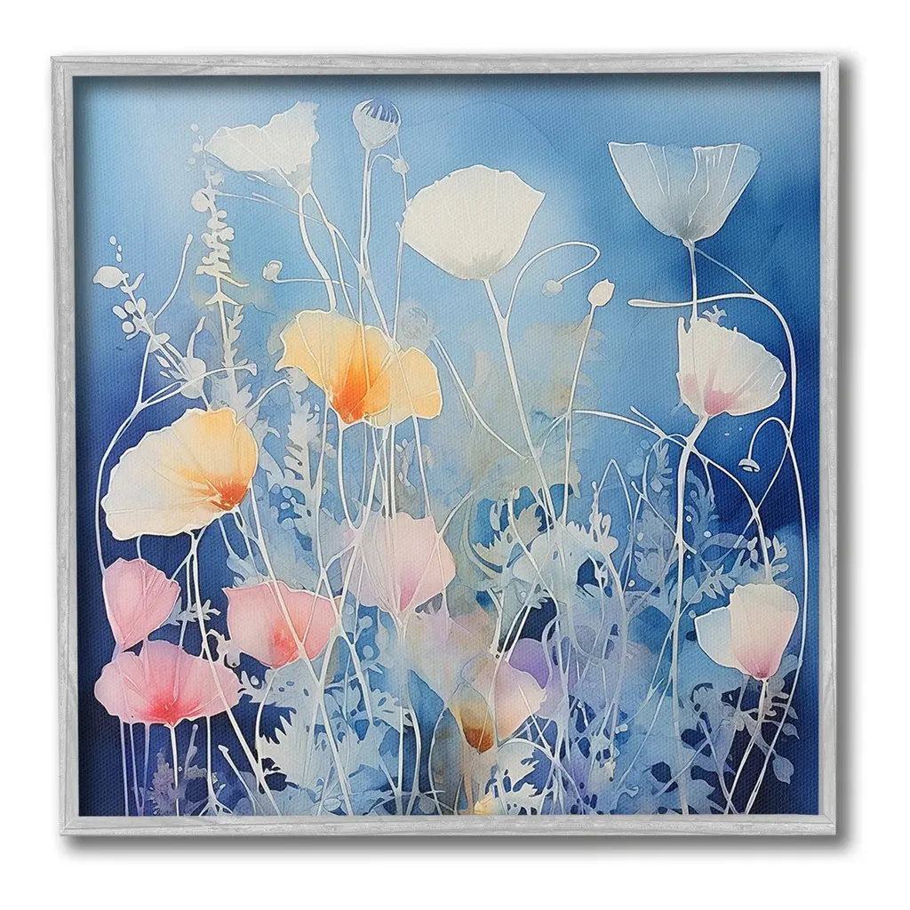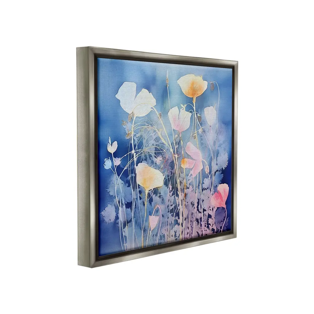 Elevate your home or office to the next level with Stupell Framed Floating Canvas Wall Art. Our premium hand-stretched canvas is mounted securely into a sturdy lightweight frame. The museum-style gap between the wrapped canvas and the box frame gives the illusion of floating artwork. Stupell Wall Art is made in the USA.Features: Dimensions: 18 x 1.7 x 18 Frame, 17 x 1.5 x 17 Canvas ArtFloating Frame Canvas Products are available in sizes 18"x18" and 25"x25". All Floating Frame Canvas Products have a 1.7" Depth.Wall Art is Ready to Hang with Hardware Free Hanging. No Installation required. For Easy Set Up Lean or Layer Artwork on Shelf or Against Wall. Artwork is Permently Fixed into the Frame.Our elevated 1.7" Thick Floating Frame is the perfect complement to our canvas style Wall Art. We use only the highest quality inks in house with industry leading printing solutions. Canvas is hand stretched over a durable wood foundation and then mounted securly into a Modern Box Frame. Made in the USA.Artwork Relates To: Flower, Plant, Floral, Pattern, Modern, Petal, Botanical, Leaf, Modern, AbstractDesign by Irena Orlov