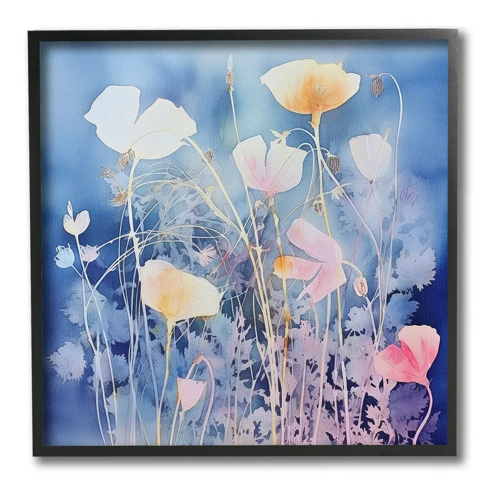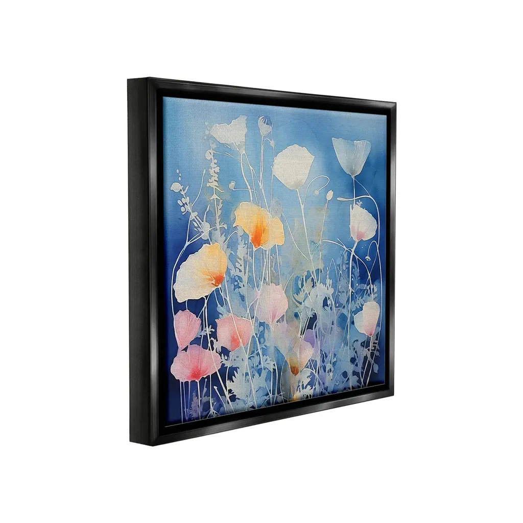 Stupell Tranquil Blue Poppies Framed Floater Canvas Wall Art Design By Irena Orlov - 18 X 18 - Black
