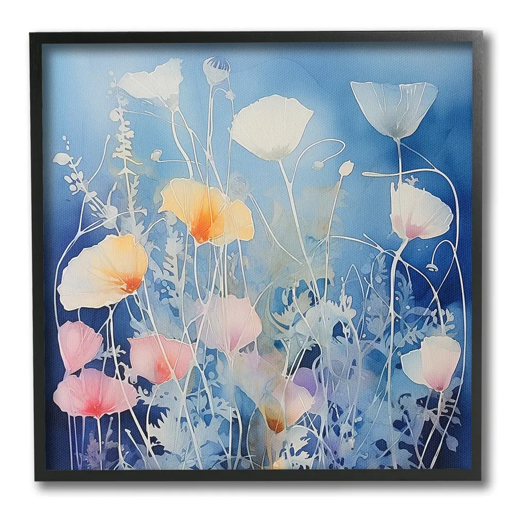 Stupell Tranquil Blue Poppies Framed Giclee Art Design By Irena Orlov - 17 X 17 - Grey