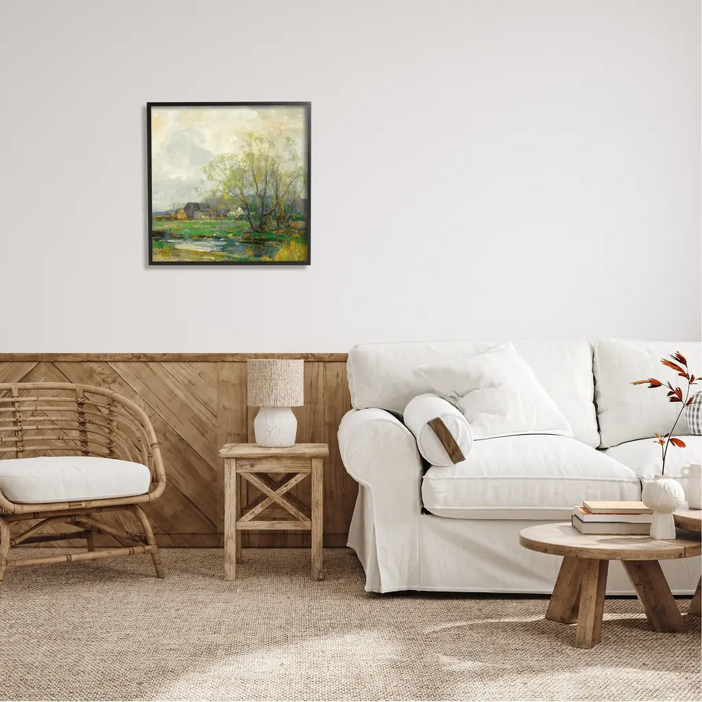 Stupell Tranquil Countryside Marsh Distant Farm Land Trees Framed Wall Art - Green - 24 X 24 - Black