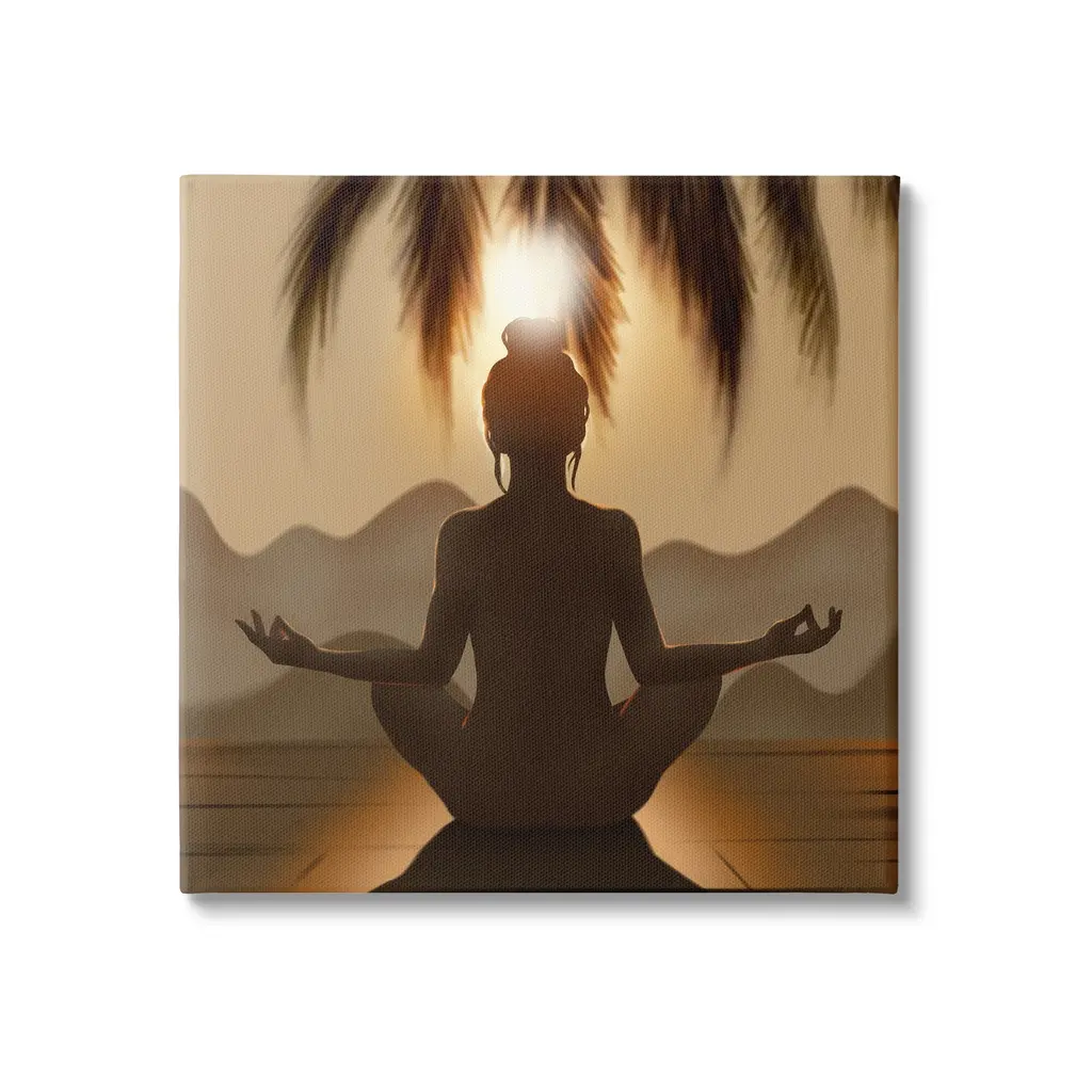 Stupell Tranquil Meditation Sunlit Woman Silhouette Mountain Scenery Canvas Wall Art, Design By Ziwei Li - 24 X 24