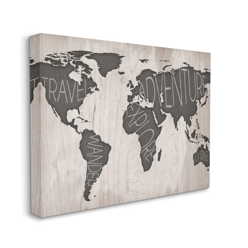 Stupell Travel Wander Explore Rustic World Map Grain Pattern Canvas Wall Art - Brown - 20 X 16