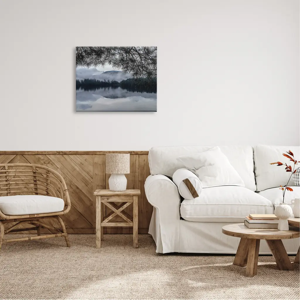Stupell Trees Surrounding Hazy Mountainous Landscape Lake Canvas Wall Art - 24 X 30