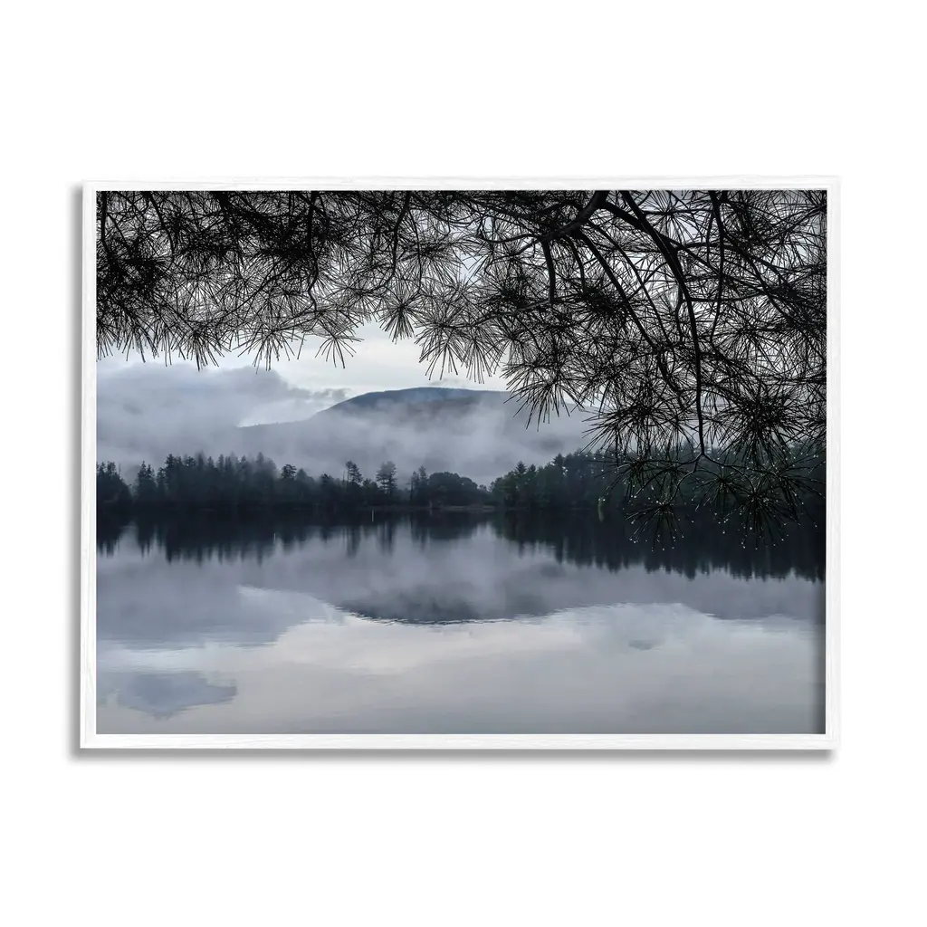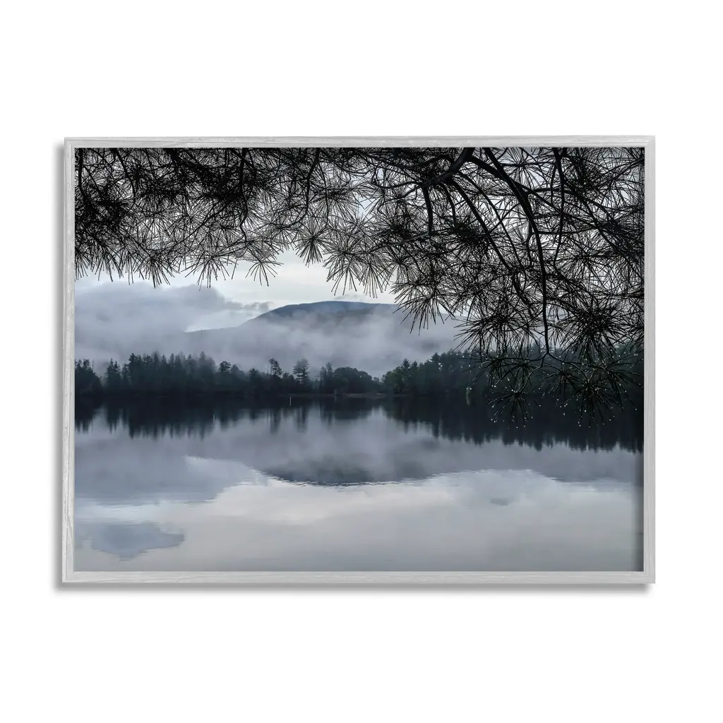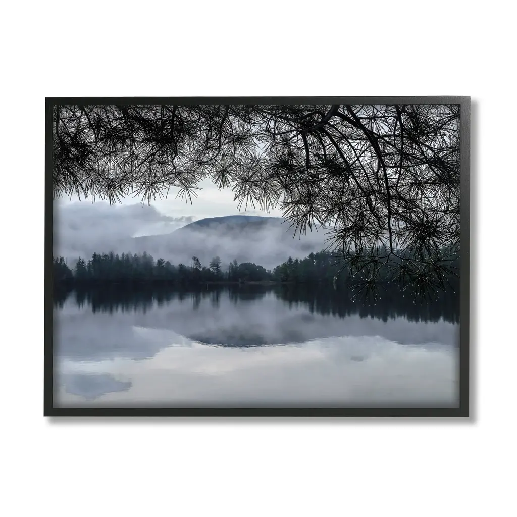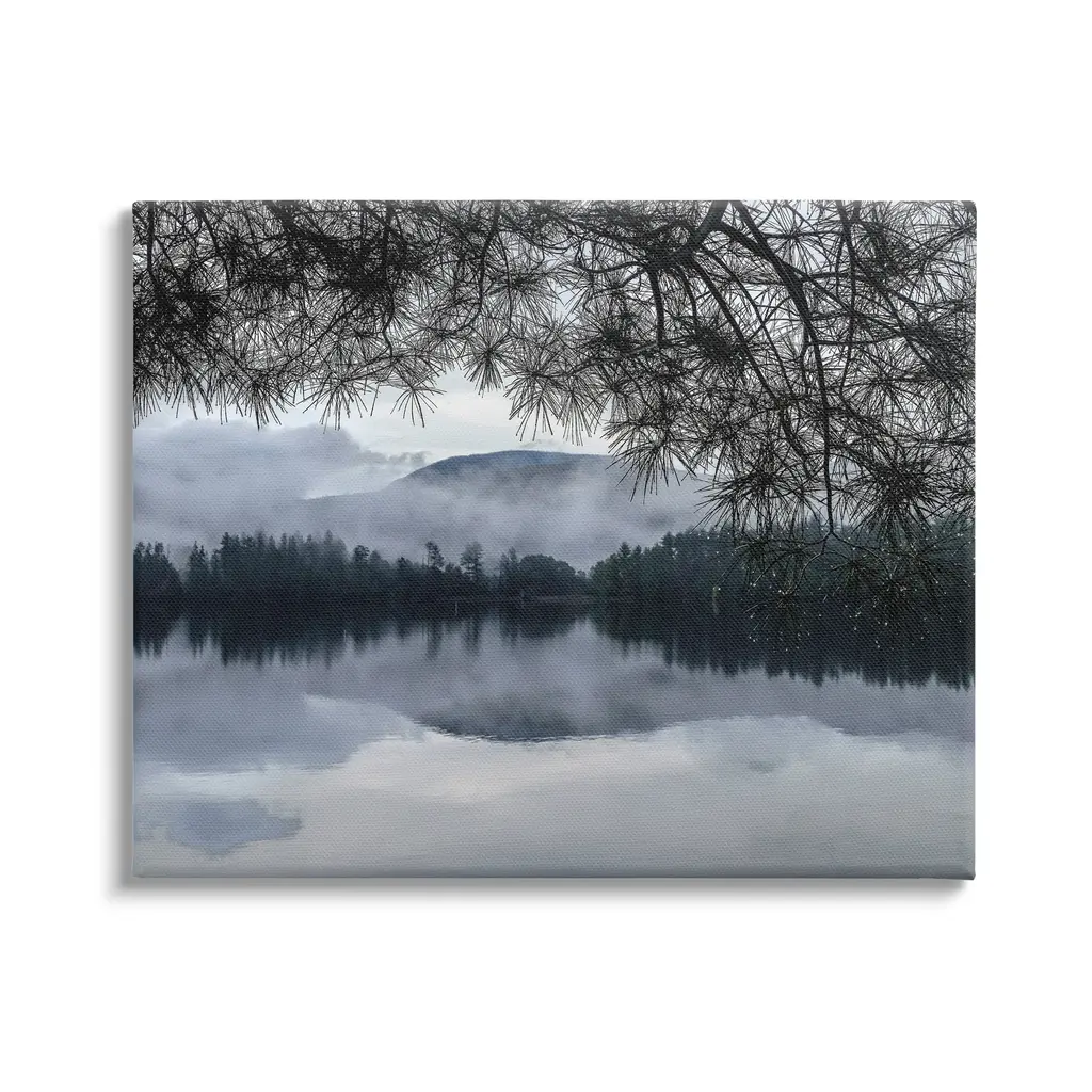 Stupell Trees Surrounding Hazy Mountainous Landscape Lake Canvas Wall Art - 36 X 48