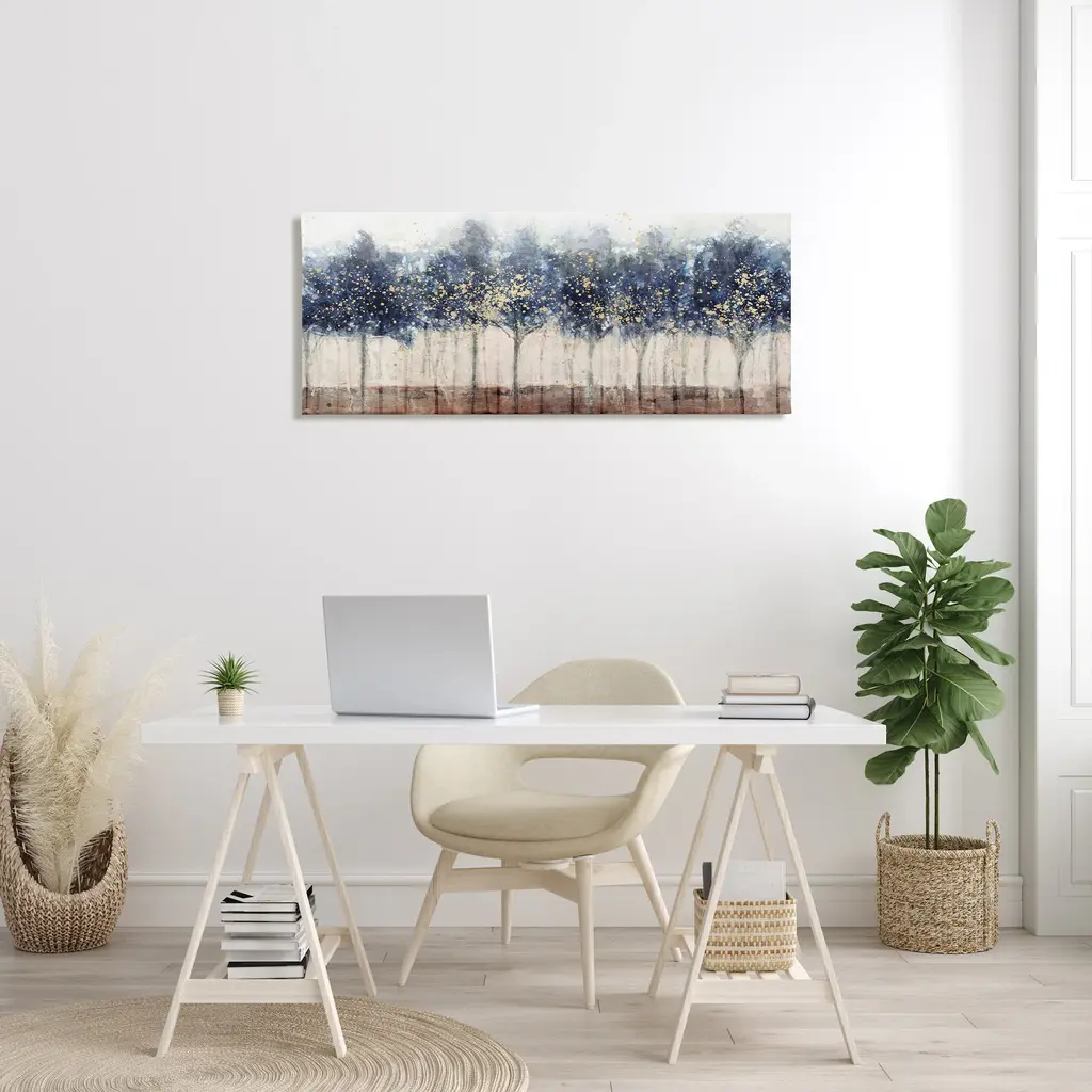 We create our stretched canvas to the highest standards. Using only the highest quality inks and canvas on Mimaki printers, we hand-cut and stretch each piece over a 1.5-inch thick wooden frame for hanging. As a result, the art comes ready to hang on the sturdy ledge with no installation required. Stupell Wall Art is made in the USA.Features: Dimensions: 24 x 1.5 x 10 InchesStretched Canvas Sizes Include Standard: 24 x 1.5 x 10 Large: 30 x 1.5 x 13 X-Large: 40 x 1.5 x 17 Oversized: 48 x 1.5 x 20Wall Art is Ready to Hang with Hardware Free Hanging. No installation required. For Easy Set Up Lean or Layer Artwork on Shelf or Against Wall.Our stretched canvas is created with the highest standards. We use only the highest quality inks and canvas on our in house Mimaki printers, and then hand cut and stretch each piece over a 1.5 inch thick wooden frame for hanging. Made In USA.Artwork Relates To: Painting, Modern, Trees, Nature, AbstractDesign by Nina Blue