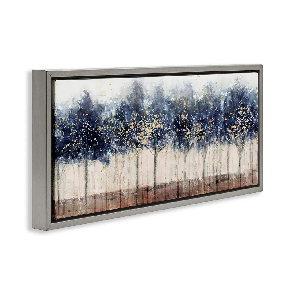Elevate your home or office to the next level with Stupell Framed Floating Canvas Wall Art. Our premium hand-stretched canvas is mounted securely into a sturdy lightweight frame. The museum-style gap between the wrapped canvas and the box frame gives the illusion of floating artwork. Stupell Wall Art is made in the USA.Features: Dimensions: 25 x 1.7 x 11 Frame, 24 x 1.5 x 10 Canvas ArtFloating Frame Canvas Products are available in sizes 25"x11" and 31"x14". All Floating Frame Canvas Products have a 1.7" Depth.Wall Art is Ready to Hang with Hardware Free Hanging. No Installation required. For Easy Set Up Lean or Layer Artwork on Shelf or Against Wall. Artwork is Permently Fixed into the Frame.Our elevated 1.7" Thick Floating Frame is the perfect complement to our canvas style Wall Art. We use only the highest quality inks in house with industry leading printing solutions. Canvas is hand stretched over a durable wood foundation and then mounted securly into a Modern Box Frame. Made in the USA.Artwork Relates To: Painting, Modern, Trees, Nature, AbstractDesign by Nina Blue