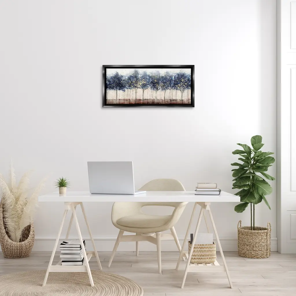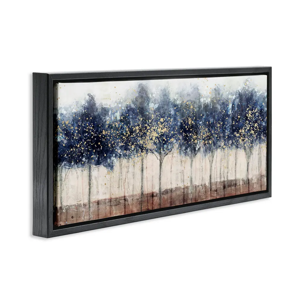 Elevate your home or office to the next level with Stupell Framed Floating Canvas Wall Art. Our premium hand-stretched canvas is mounted securely into a sturdy lightweight frame. The museum-style gap between the wrapped canvas and the box frame gives the illusion of floating artwork. Stupell Wall Art is made in the USA.Features: Dimensions: 25 x 1.7 x 11 Frame, 24 x 1.5 x 10 Canvas ArtFloating Frame Canvas Products are available in sizes 25"x11" and 31"x14". All Floating Frame Canvas Products have a 1.7" Depth.Wall Art is Ready to Hang with Hardware Free Hanging. No Installation required. For Easy Set Up Lean or Layer Artwork on Shelf or Against Wall. Artwork is Permently Fixed into the Frame.Our elevated 1.7" Thick Floating Frame is the perfect complement to our canvas style Wall Art. We use only the highest quality inks in house with industry leading printing solutions. Canvas is hand stretched over a durable wood foundation and then mounted securly into a Modern Box Frame. Made in the USA.Artwork Relates To: Painting, Modern, Trees, Nature, AbstractDesign by Nina Blue