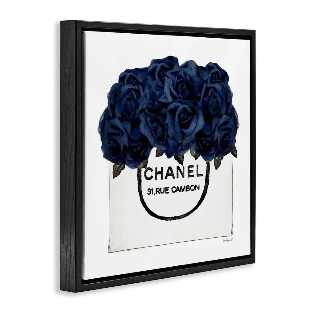 Stupell Trendy Chic Navy Blue Roses Framed Floater Canvas Wall Art Design By Amanda Greenwood - 25 X 25 - Black