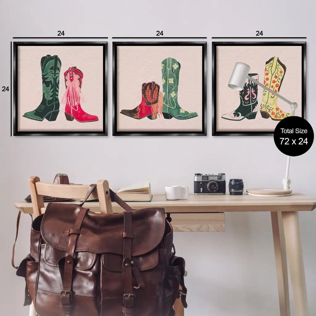 Stupell Trendy Cowgirl Boots Framed Floater Canvas Wall Art Design By Grace Popp (Set Of 3) - 25 X 25 - Black