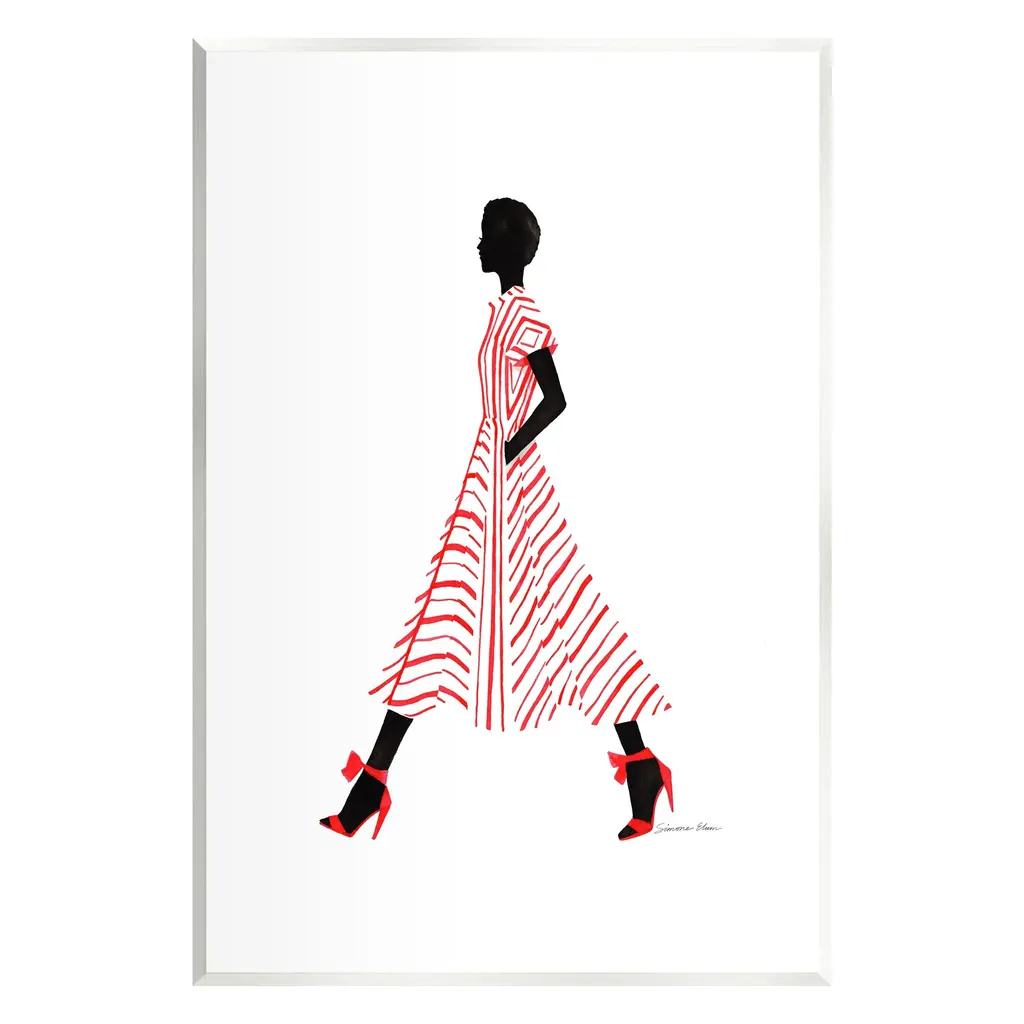 Our wall plaques start as high-quality lithograph prints mounted on durable 0.5-inch thick MDF wood. Each piece is hand finished and comes with a fresh layer of white foil on the sides to give it a crisp, clean look. Plaques arrive ready to hang without installation and come with removable plastic corners to keep them from damage in transit. Stupell Wall Art is made in the USA.Features: Dimensions: 10 x 0.5 x 15 InchesWall Plaque Sizes Include Standard: 10 x 0.5 x 15 Oversized: 13 x 0.5 x 19Wall Art is Ready to Hang with Hardware Free Hanging. No installation required. For Easy Set Up Lean or Layer Artwork on Shelf or Against Wall.All of our wall plaques start off as high quality lithograph prints that are then mounted on durable 0.5 inch thick MDF wood. Each piece is hand finished and comes with a fresh layer of foil on the sides to give it a crisp clean look. Made In USA.Artwork Relates To: Person, Female, Woman, Clothing, Shoe, Silhouette, Fashion, Fashion Illustration, GlamDesign by Simone Elum