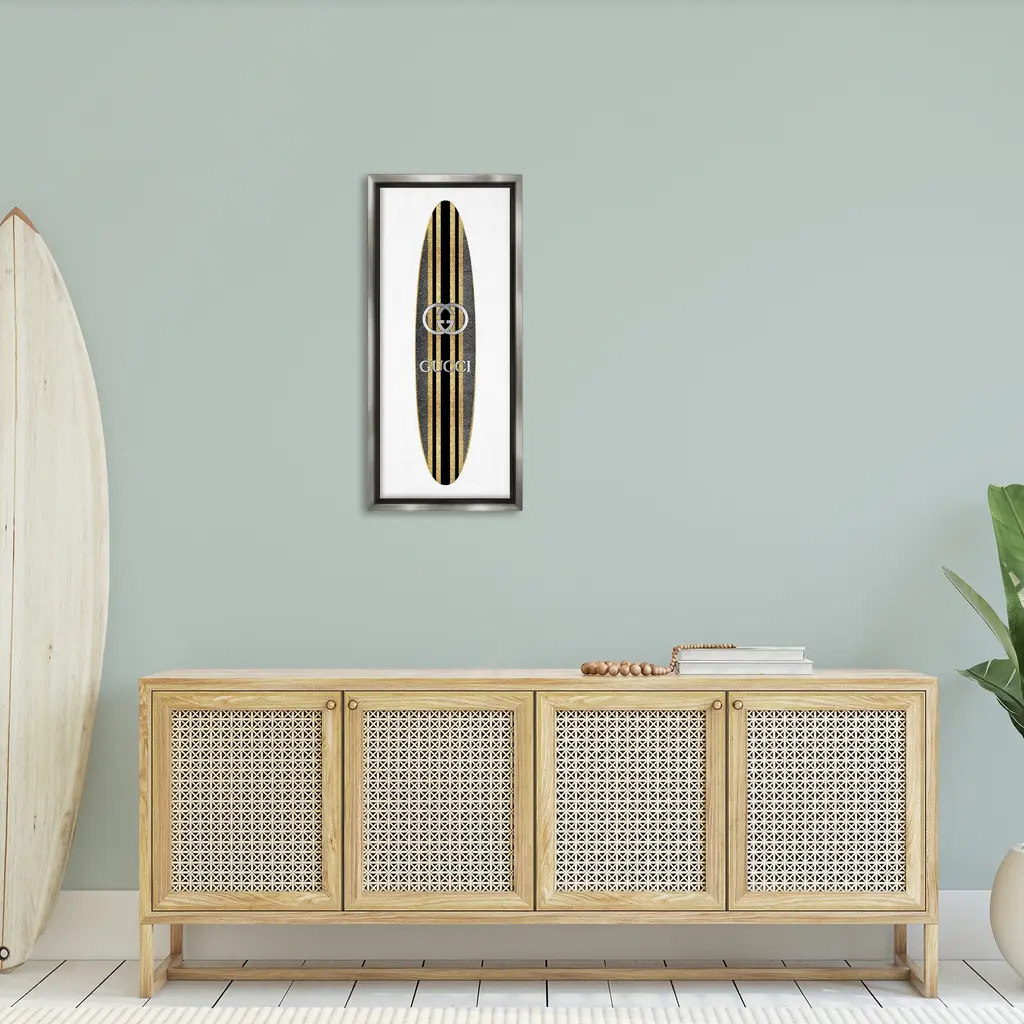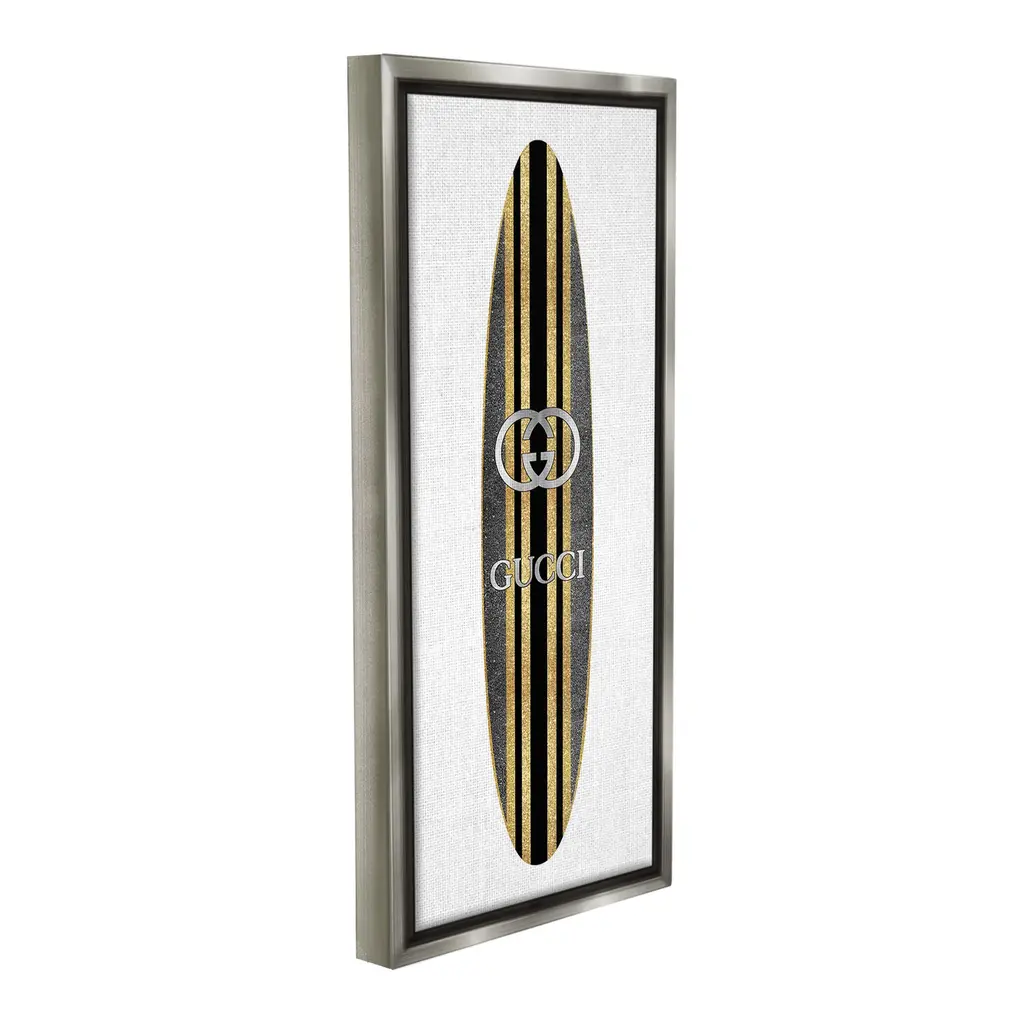 Stupell Trendy Glam Surfboard Framed Floater Canvas Wall Art Design By Madeline Blake - 14 X 31 - Grey
