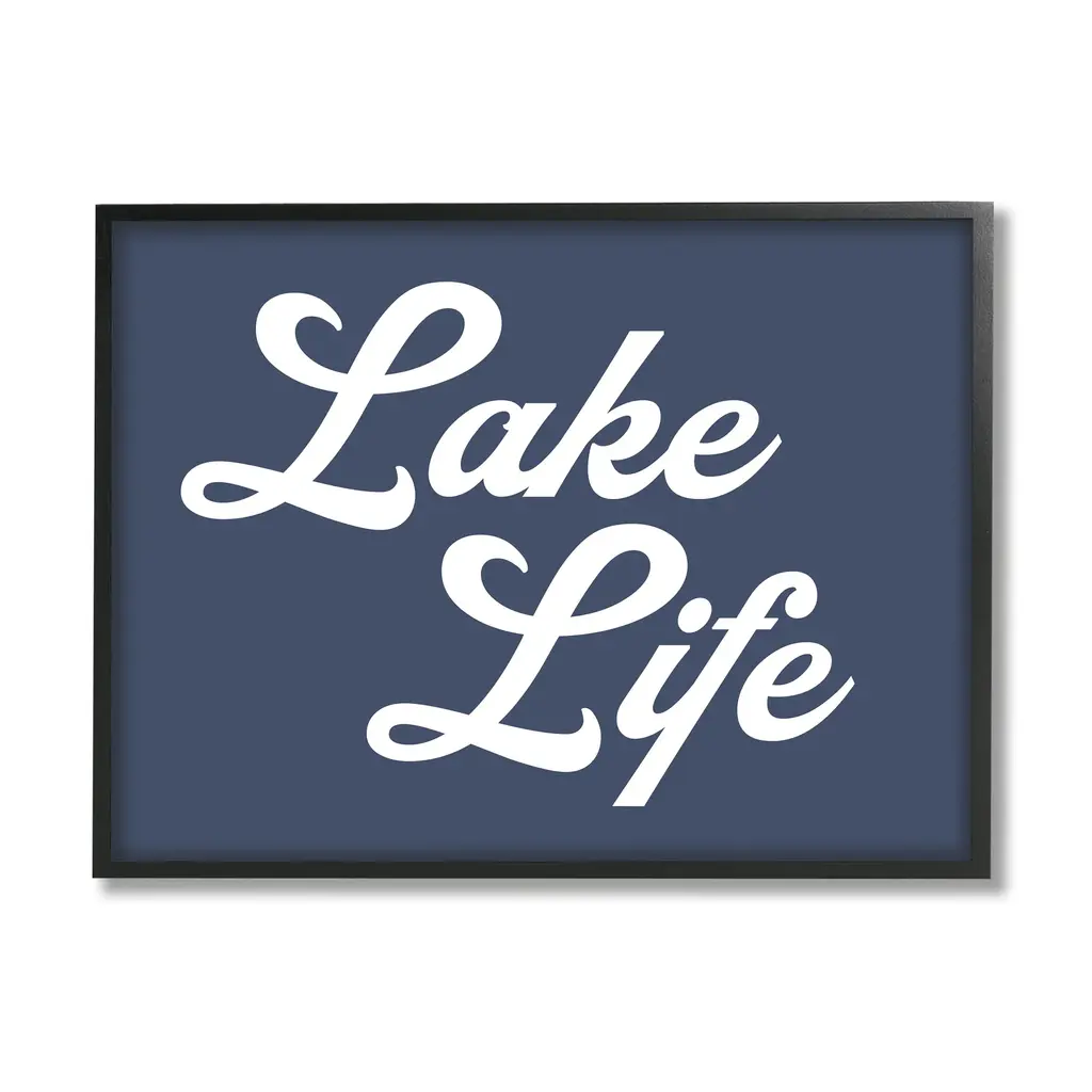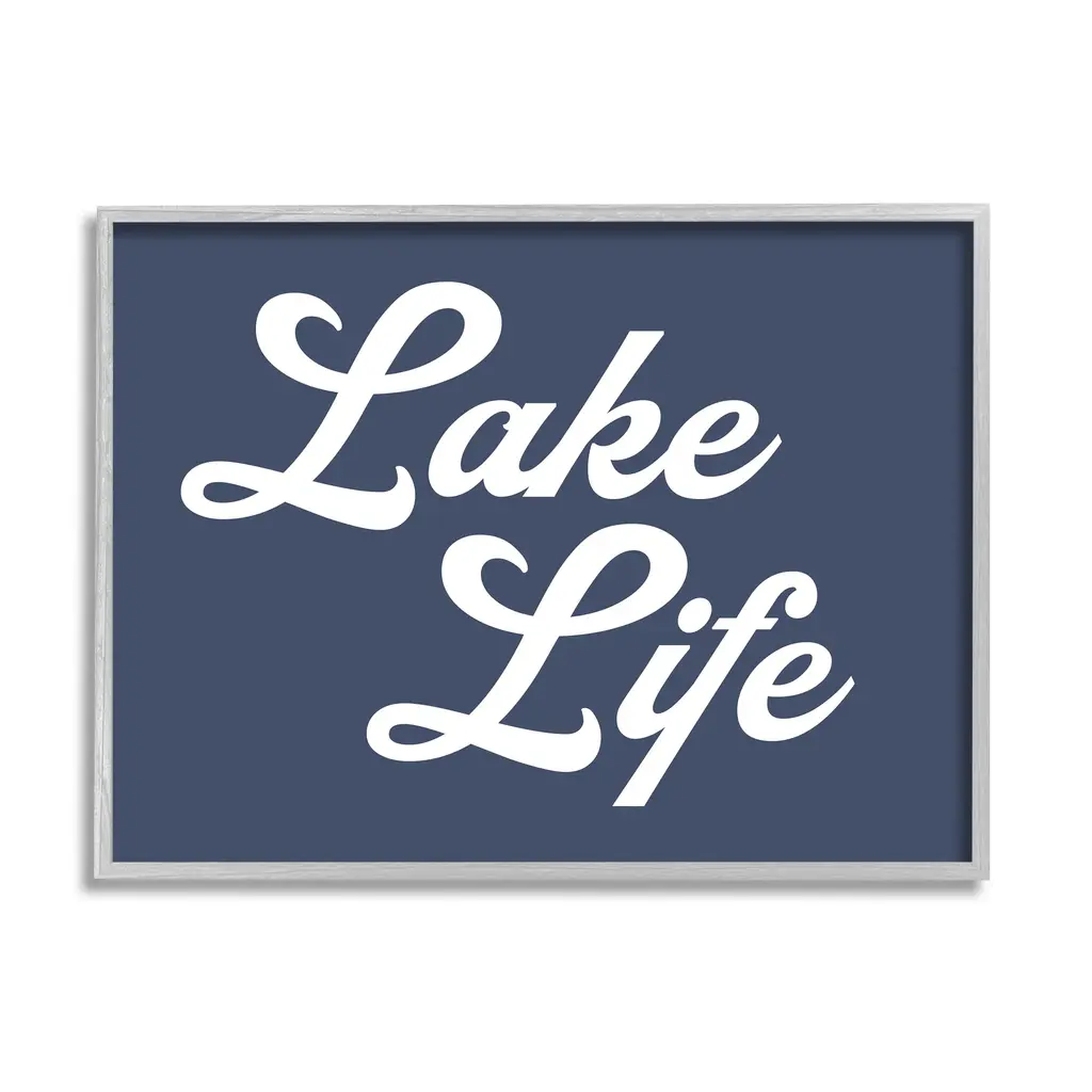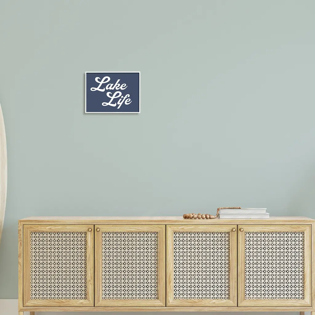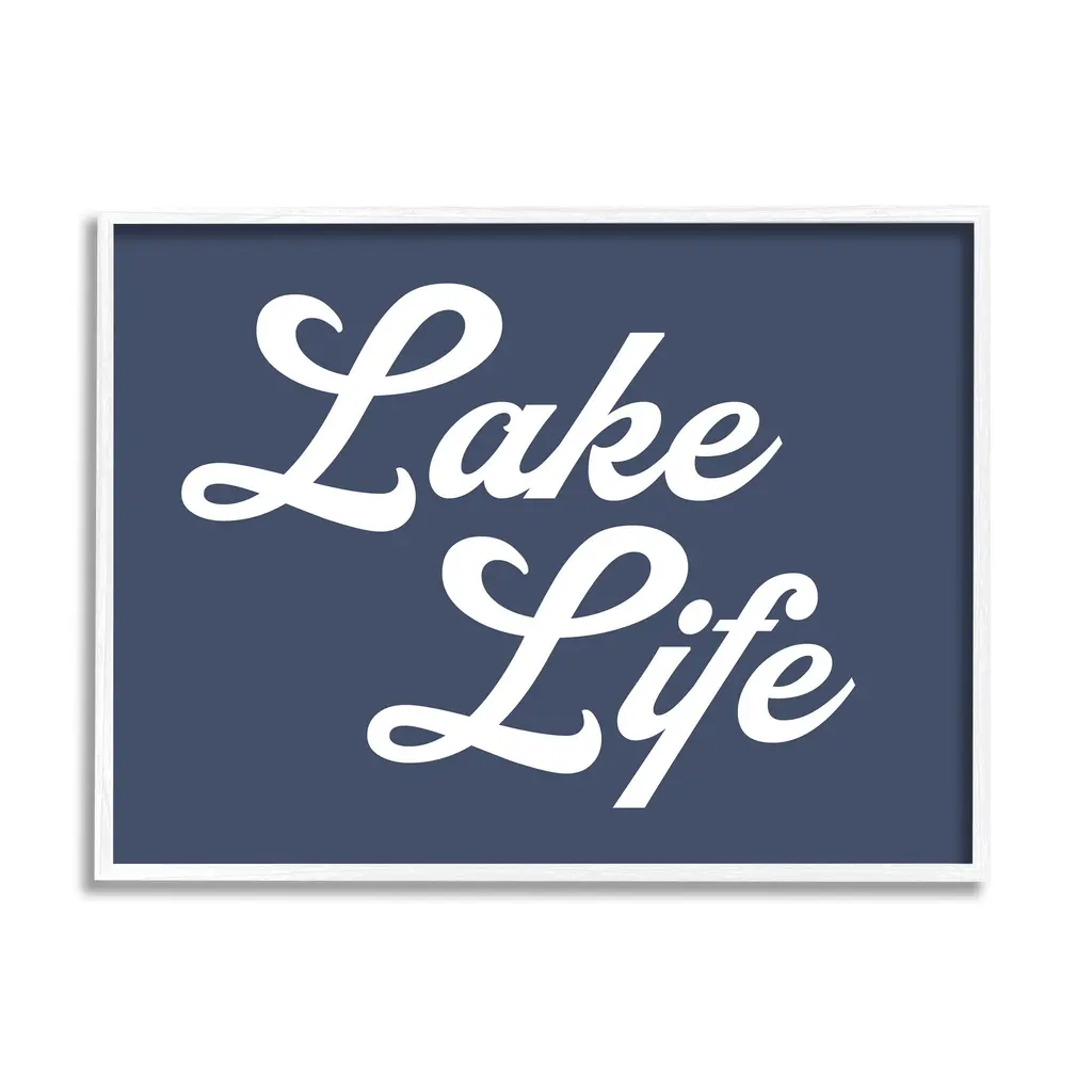 Stupell Trendy Lake Life Phrase Solid Blue Sign Framed Wall Art, Design By Daphne Polselli - 14 X 11 - White