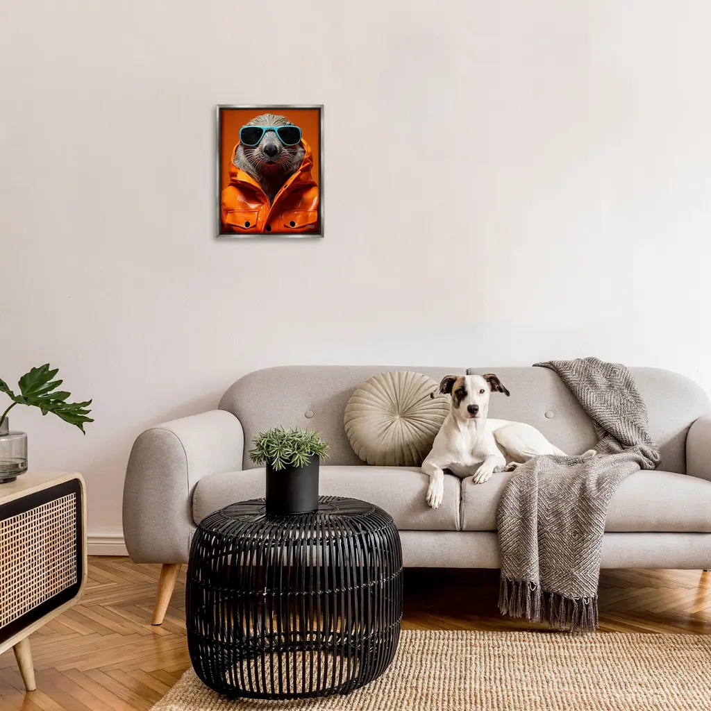Elevate your home or office to the next level with Stupell Framed Floating Canvas Wall Art. Our premium hand-stretched canvas is mounted securely into a sturdy lightweight frame. The museum-style gap between the wrapped canvas and the box frame gives the illusion of floating artwork. Stupell Wall Art is made in the USA.Features: Dimensions: 17 x 1.7 x 21 Frame, 16 x 1.5 x 20 Canvas ArtFloating Frame Canvas Products are available in sizes 17"x21" and 25"x31". All Floating Frame Canvas Products have a 1.7" Depth.Wall Art is Ready to Hang with Hardware Free Hanging. No Installation required. For Easy Set Up Lean or Layer Artwork on Shelf or Against Wall. Artwork is Permently Fixed into the Frame.Our elevated 1.7" Thick Floating Frame is the perfect complement to our canvas style Wall Art. We use only the highest quality inks in house with industry leading printing solutions. Canvas is hand stretched over a durable wood foundation and then mounted securly into a Modern Box Frame. Made in the USA.Artwork Relates To: Animal, Mammal, Fashion, Portrait, Sunglasses, Jacket, Otter, SealDesign by RB