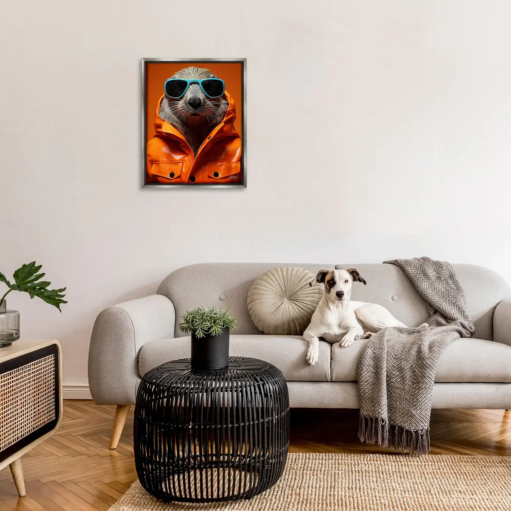 Elevate your home or office to the next level with Stupell Framed Floating Canvas Wall Art. Our premium hand-stretched canvas is mounted securely into a sturdy lightweight frame. The museum-style gap between the wrapped canvas and the box frame gives the illusion of floating artwork. Stupell Wall Art is made in the USA.Features: Dimensions: 17 x 1.7 x 21 Frame, 16 x 1.5 x 20 Canvas ArtFloating Frame Canvas Products are available in sizes 17"x21" and 25"x31". All Floating Frame Canvas Products have a 1.7" Depth.Wall Art is Ready to Hang with Hardware Free Hanging. No Installation required. For Easy Set Up Lean or Layer Artwork on Shelf or Against Wall. Artwork is Permently Fixed into the Frame.Our elevated 1.7" Thick Floating Frame is the perfect complement to our canvas style Wall Art. We use only the highest quality inks in house with industry leading printing solutions. Canvas is hand stretched over a durable wood foundation and then mounted securly into a Modern Box Frame. Made in the USA.Artwork Relates To: Animal, Mammal, Fashion, Portrait, Sunglasses, Jacket, Otter, SealDesign by RB