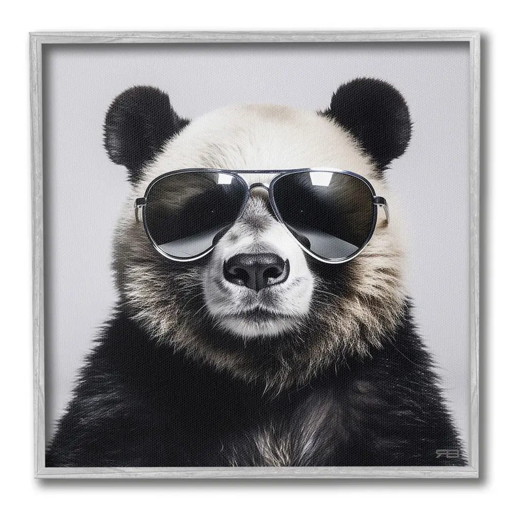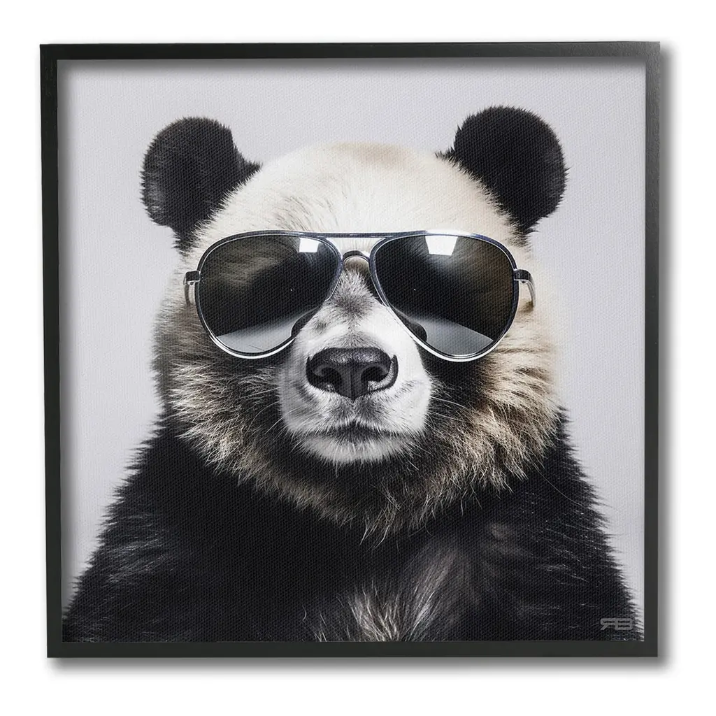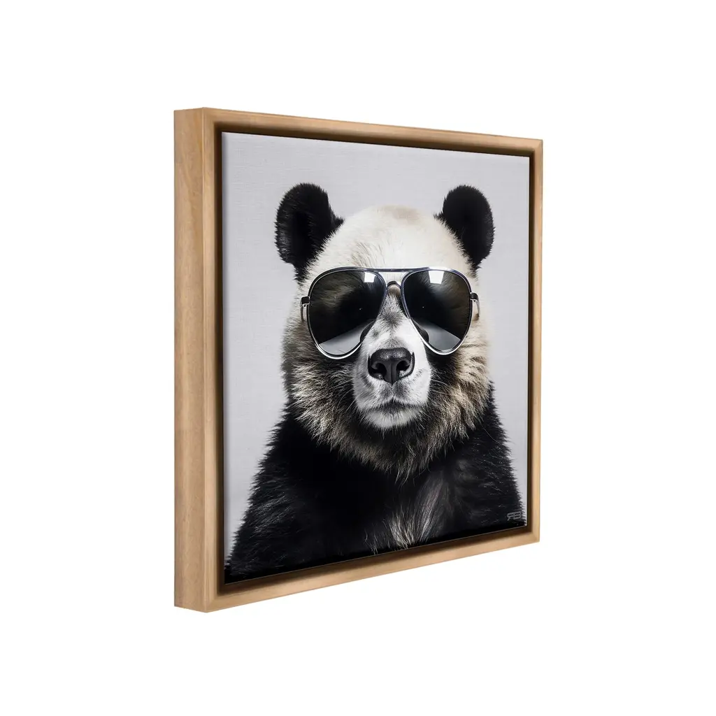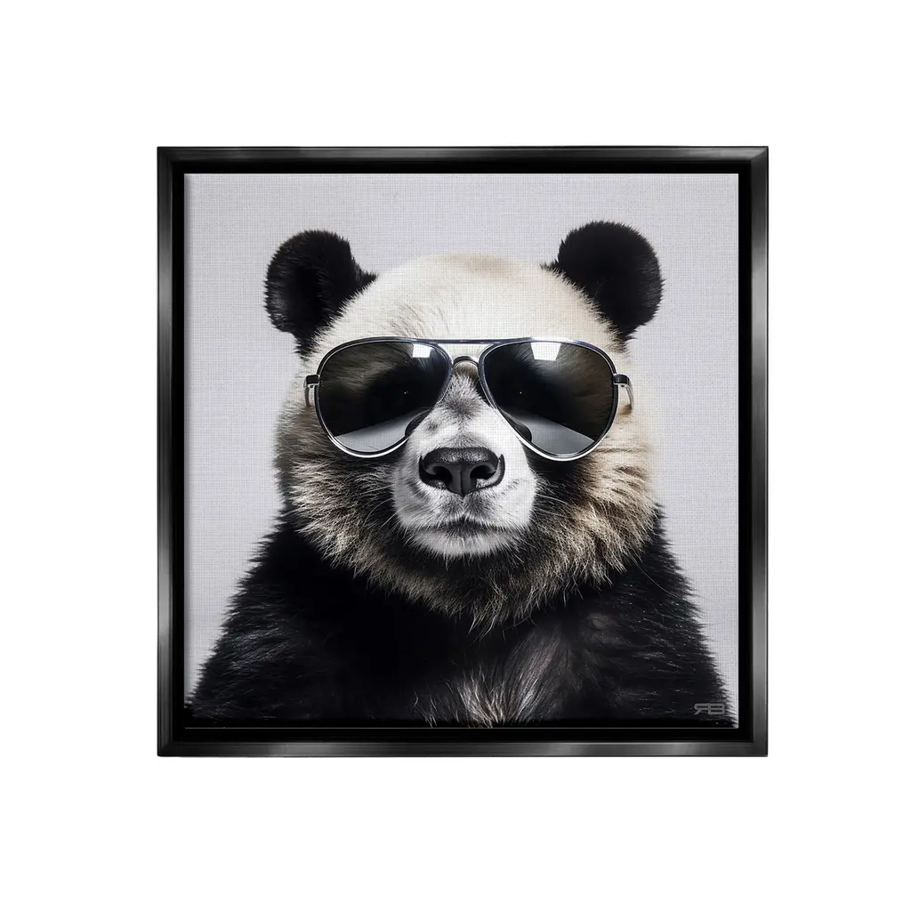 Elevate your home or office to the next level with Stupell Framed Floating Canvas Wall Art. Our premium hand-stretched canvas is mounted securely into a sturdy lightweight frame. The museum-style gap between the wrapped canvas and the box frame gives the illusion of floating artwork. Stupell Wall Art is made in the USA.Features: Dimensions: 18 x 1.7 x 18 Frame, 17 x 1.5 x 17 Canvas ArtFloating Frame Canvas Products are available in sizes 18"x18" and 25"x25". All Floating Frame Canvas Products have a 1.7" Depth.Wall Art is Ready to Hang with Hardware Free Hanging. No Installation required. For Easy Set Up Lean or Layer Artwork on Shelf or Against Wall. Artwork is Permently Fixed into the Frame.Our elevated 1.7" Thick Floating Frame is the perfect complement to our canvas style Wall Art. We use only the highest quality inks in house with industry leading printing solutions. Canvas is hand stretched over a durable wood foundation and then mounted securly into a Modern Box Frame. Made in the USA.Artwork Relates To: Sunglasses, Animal, Panda Bear, Mammal, Wildlife, Fashion, PortraitDesign by RB