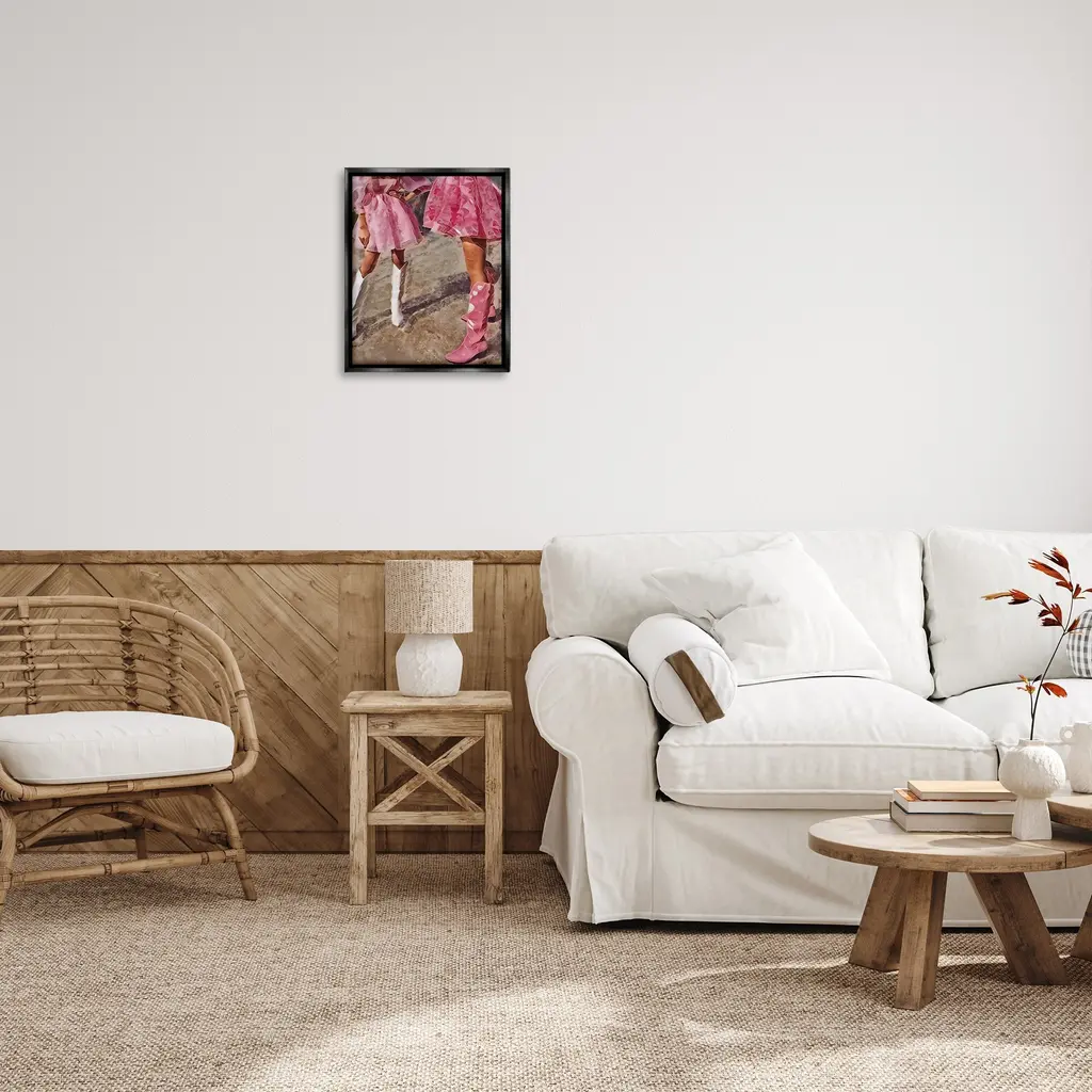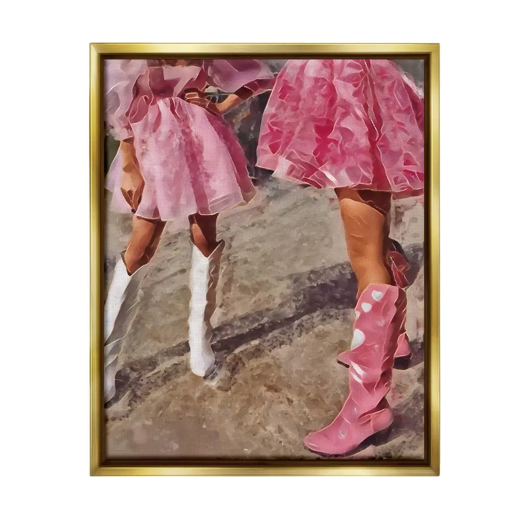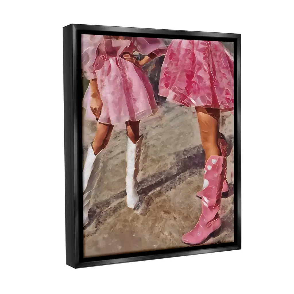 Elevate your home or office to the next level with Stupell Framed Floating Canvas Wall Art. Our premium hand-stretched canvas is mounted securely into a sturdy lightweight frame. The museum-style gap between the wrapped canvas and the box frame gives the illusion of floating artwork. Stupell Wall Art is made in the USA.Features: Dimensions: 17 x 1.7 x 21 Frame, 16 x 1.5 x 20 Canvas ArtFloating Frame Canvas Products are available in sizes 17"x21" and 25"x31". All Floating Frame Canvas Products have a 1.7" Depth.Wall Art is Ready to Hang with Hardware Free Hanging. No Installation required. For Easy Set Up Lean or Layer Artwork on Shelf or Against Wall. Artwork is Permently Fixed into the Frame.Our elevated 1.7" Thick Floating Frame is the perfect complement to our canvas style Wall Art. We use only the highest quality inks in house with industry leading printing solutions. Canvas is hand stretched over a durable wood foundation and then mounted securly into a Modern Box Frame. Made in the USA.Artwork Relates To: Equestrian, Rodeo, Country, Southwestern, Cowgirl, Pink, Pastel, Dress, FashionDesign by Jesse Keith