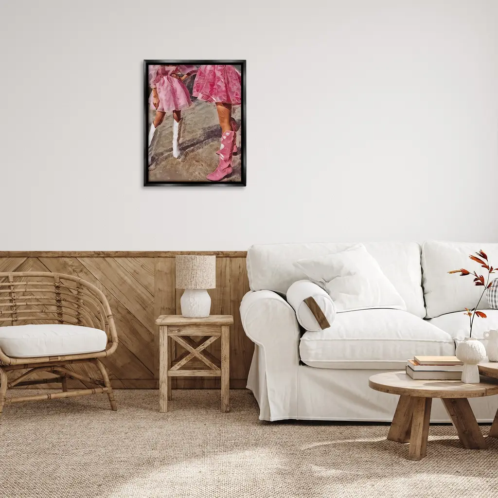 Elevate your home or office to the next level with Stupell Framed Floating Canvas Wall Art. Our premium hand-stretched canvas is mounted securely into a sturdy lightweight frame. The museum-style gap between the wrapped canvas and the box frame gives the illusion of floating artwork. Stupell Wall Art is made in the USA.Features: Dimensions: 17 x 1.7 x 21 Frame, 16 x 1.5 x 20 Canvas ArtFloating Frame Canvas Products are available in sizes 17"x21" and 25"x31". All Floating Frame Canvas Products have a 1.7" Depth.Wall Art is Ready to Hang with Hardware Free Hanging. No Installation required. For Easy Set Up Lean or Layer Artwork on Shelf or Against Wall. Artwork is Permently Fixed into the Frame.Our elevated 1.7" Thick Floating Frame is the perfect complement to our canvas style Wall Art. We use only the highest quality inks in house with industry leading printing solutions. Canvas is hand stretched over a durable wood foundation and then mounted securly into a Modern Box Frame. Made in the USA.Artwork Relates To: Equestrian, Rodeo, Country, Southwestern, Cowgirl, Pink, Pastel, Dress, FashionDesign by Jesse Keith